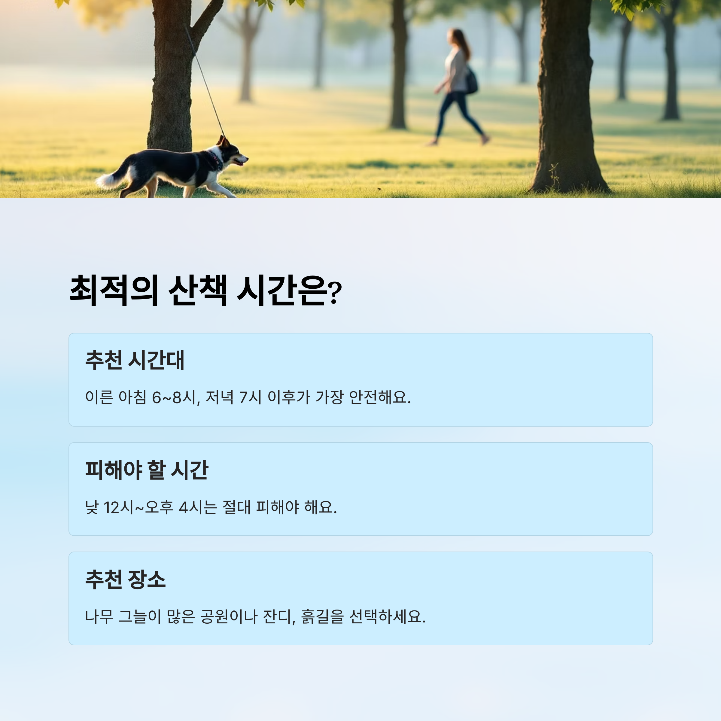 | 시간대 | 온도 | 산책 적합도 | 추천 장소 |