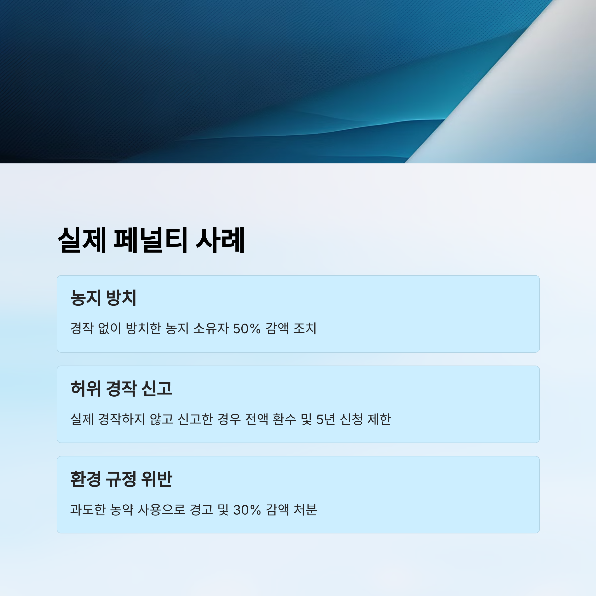 | 농지 방치 후 직불금 수령 | 50% 감액 조치 |