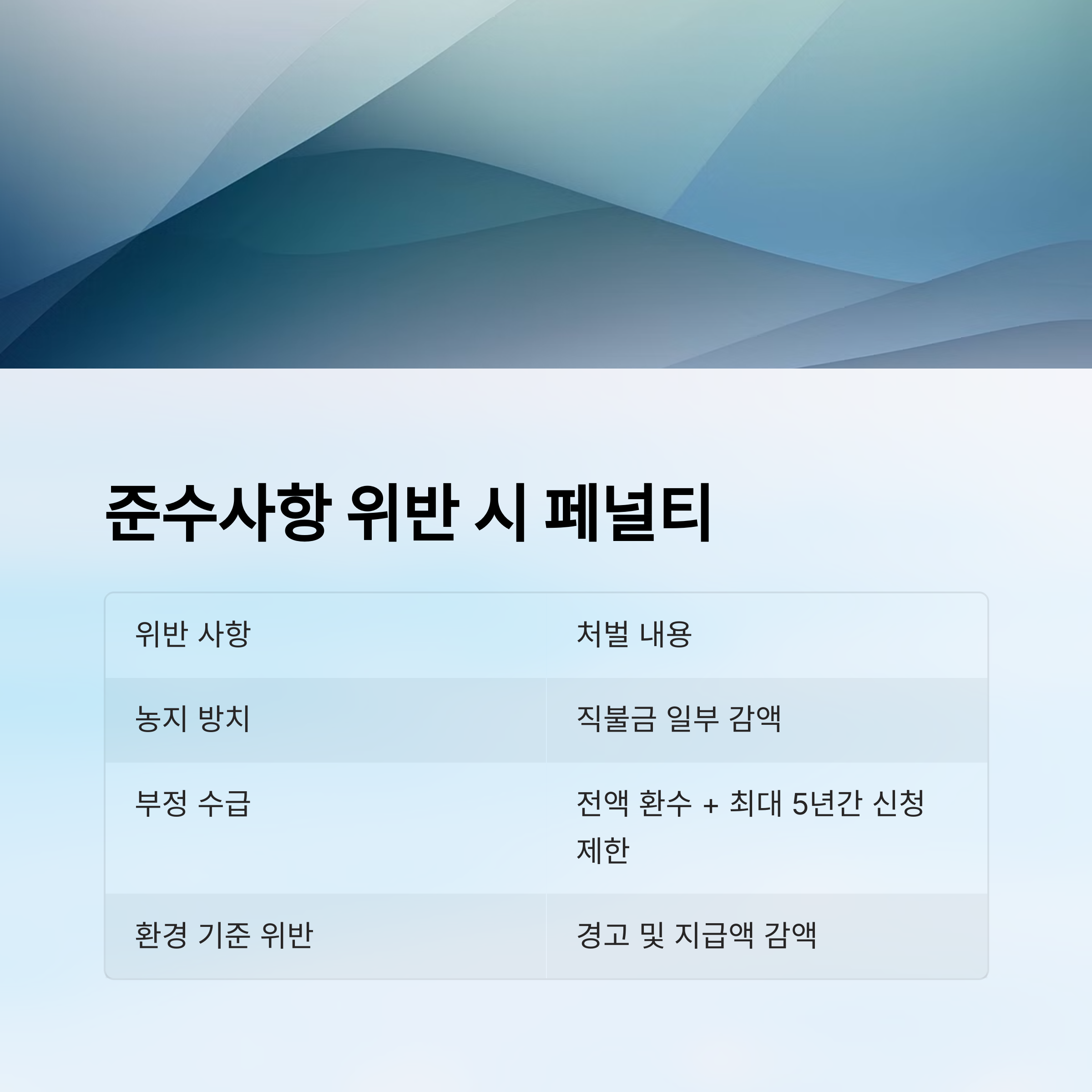 | 🚫 환경 기준 위반 | 경고 및 지급액 감액 |
