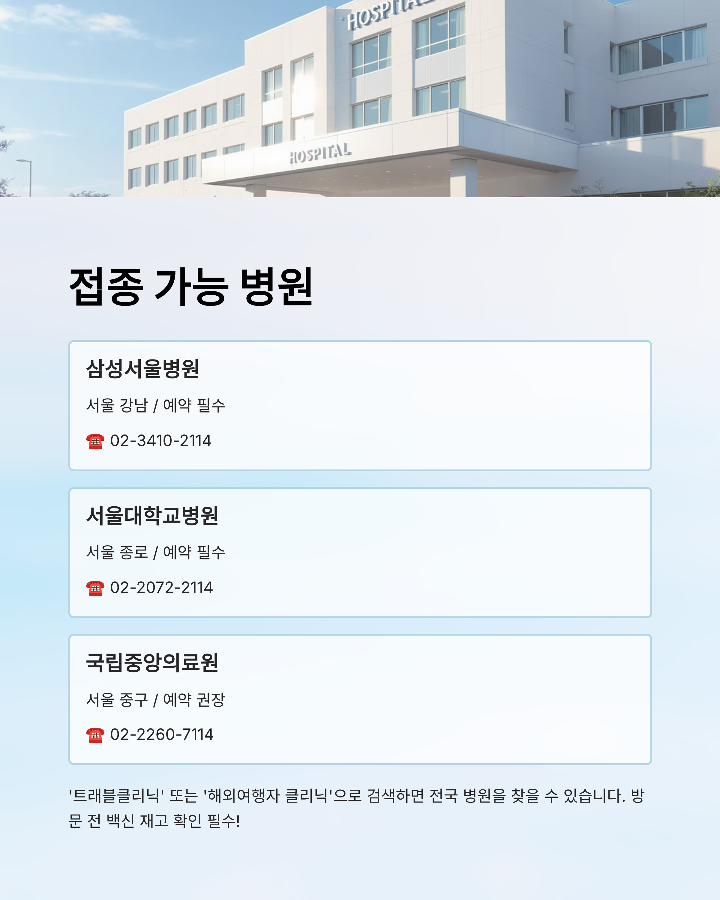 접종 가능한 병원 리스트 🏥