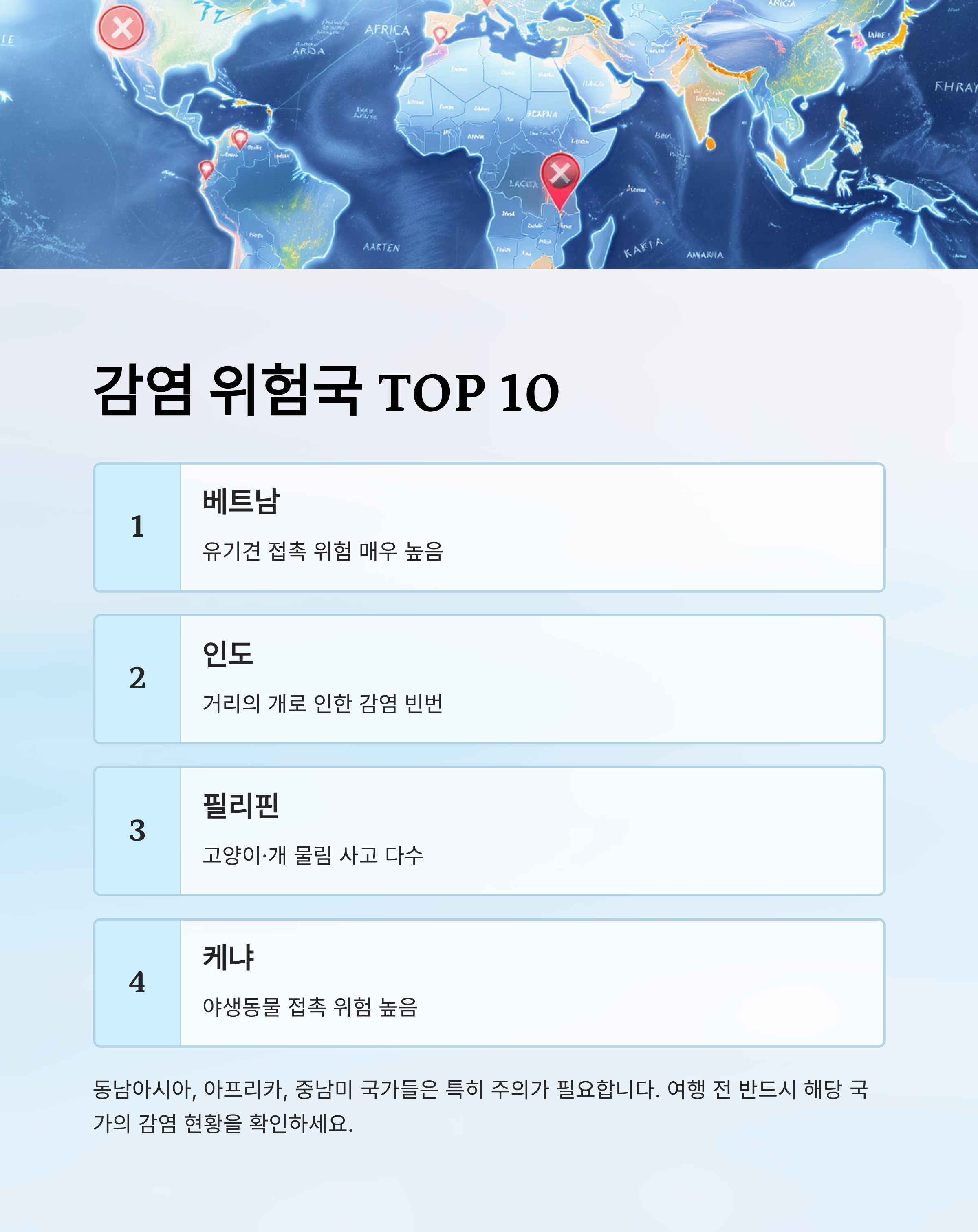 해외여행 시 감염 위험국 TOP 10 🌍