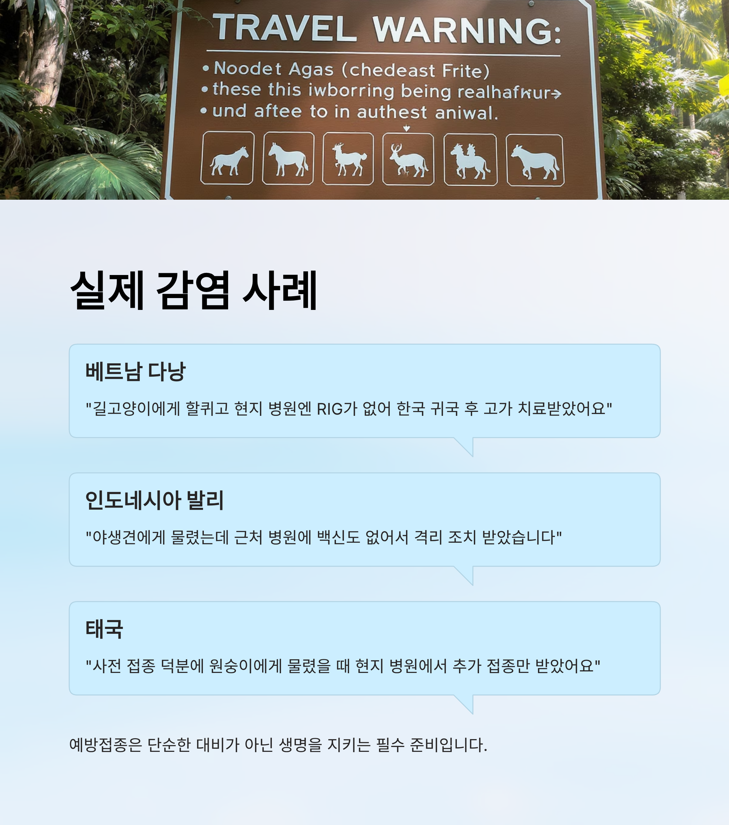 후기를 통해 알 수 있는 건, 광견병은 단순한 이론적 위험이 아니라 실제로 우리 주변 여행자들에게 벌어지고 있다는 사실이에요. 예방이 최선이고, 접종은 그 예방을 위한 가장 확실한 방법이에요.