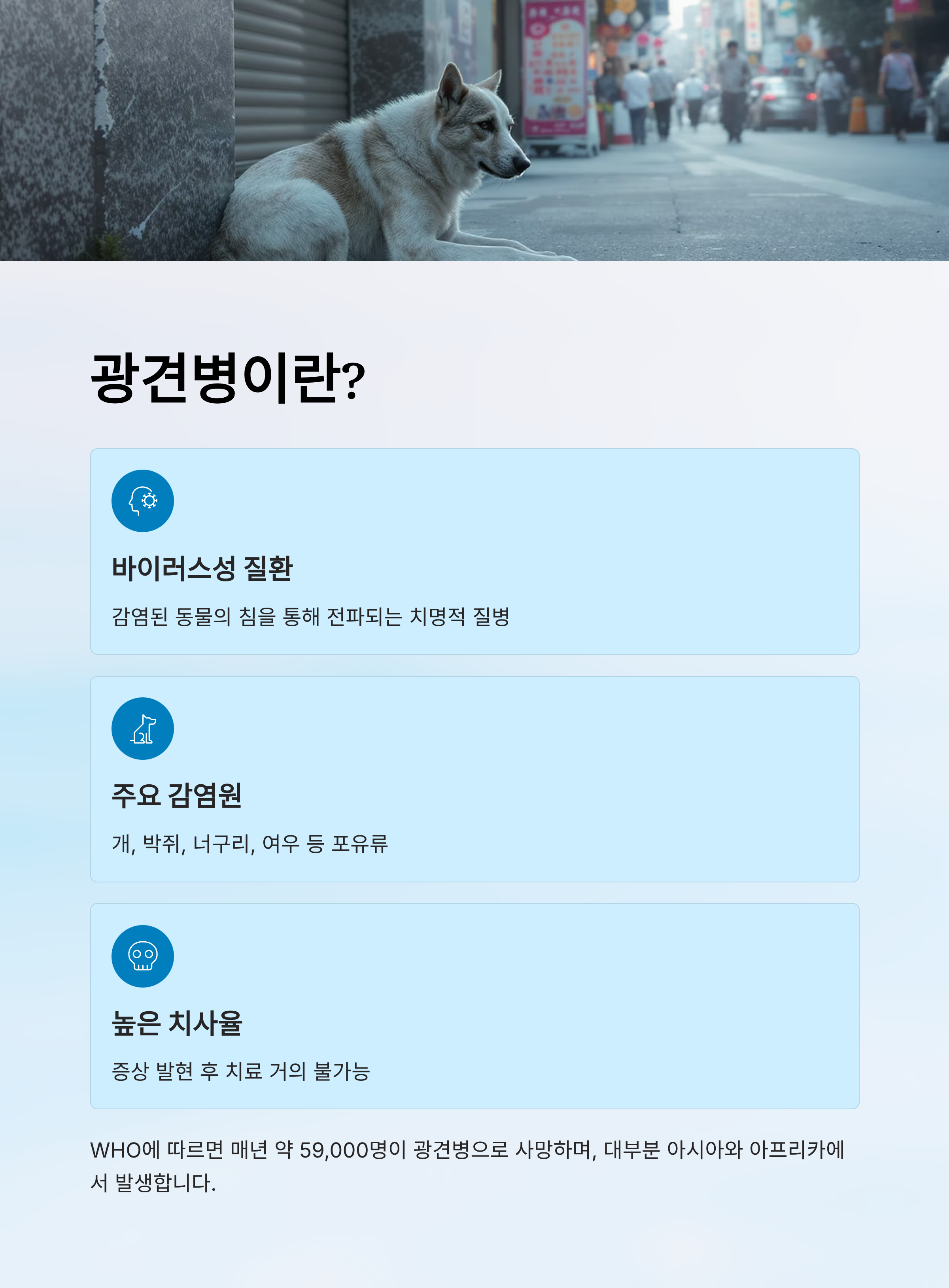 사람에게도 감염될 수 있는 무서운 바이러스, 광견병. 한 번 발병하면 사실상 치료가 불가능하다는 점에서 공포감이 크죠. 하지만 제대로 알고 대비하면 충분히 막을 수 있는 질병이에요. 😷
