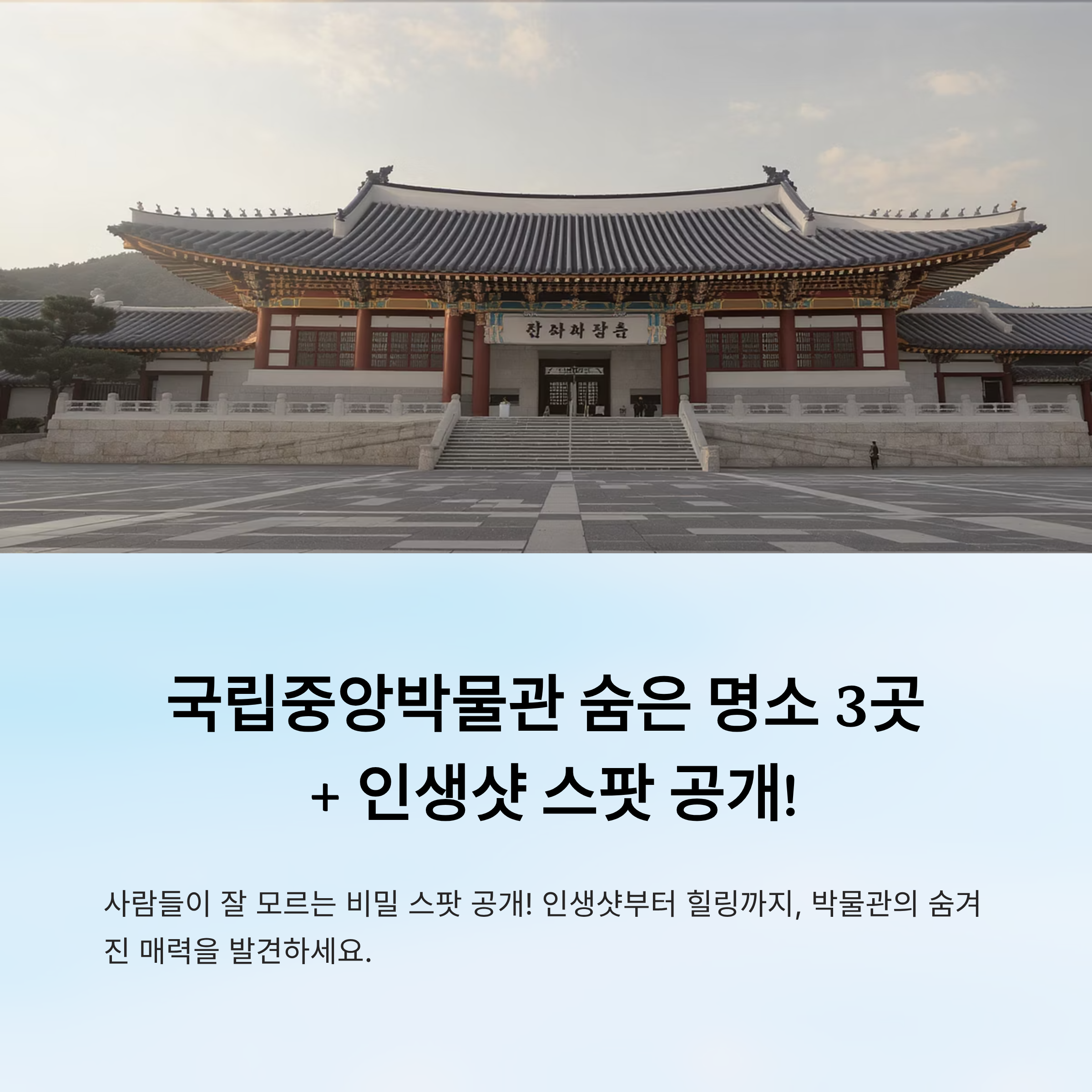이번 글에서는 사람들이 잘 모르는 국립중앙박물관의 숨겨진 스팟 3곳을 소개할게요. 단순히 전시만 보는 게 아닌, 자연과 건축이 어우러진 공간, 조용한 쉼터, 그리고 인생샷 건질 수 있는 비밀 장소까지 콕 찝어 드릴 거예요! 📸