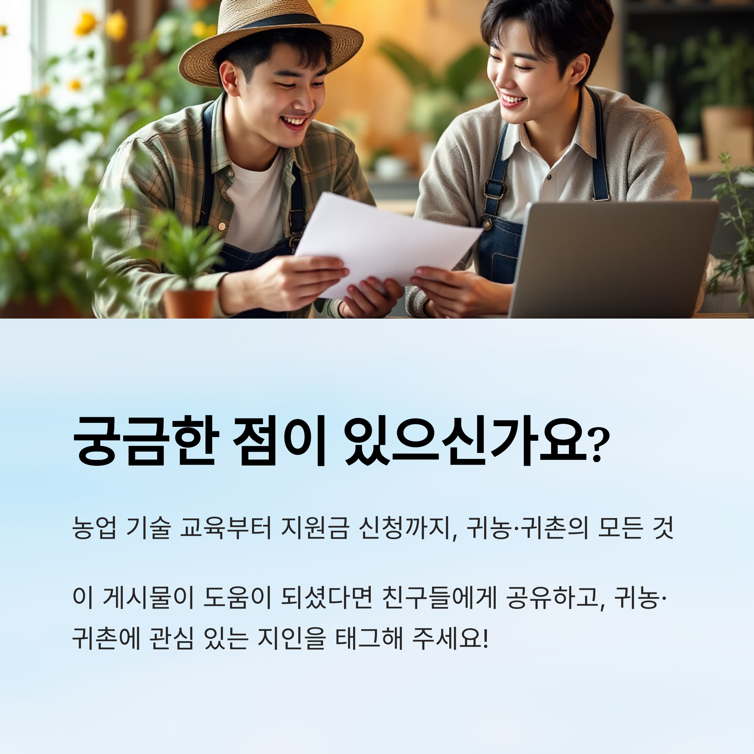 | 기타 | 영농교육비, 컨설팅 포함 | 농촌 체험, 귀촌 학교 등 |