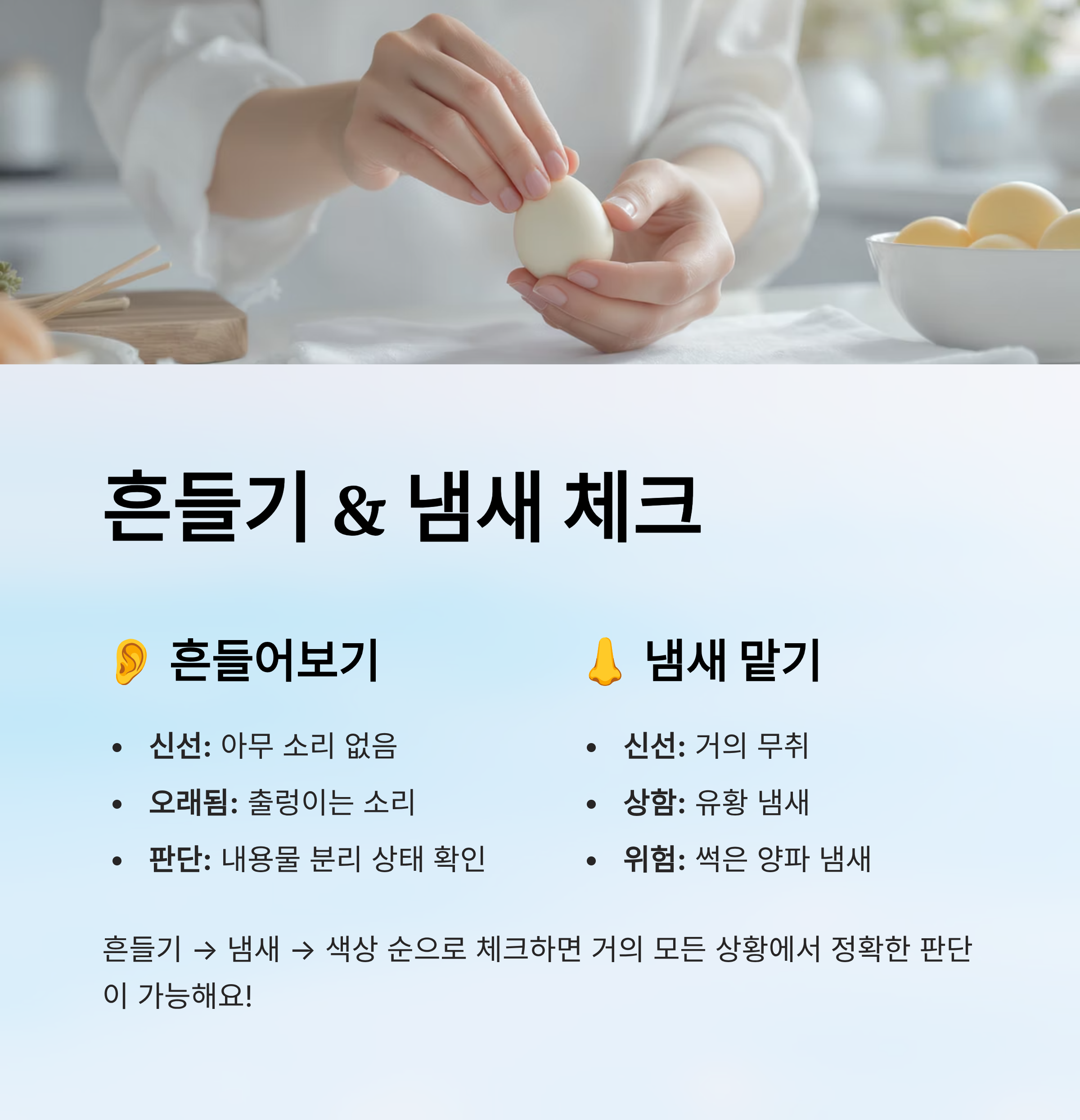 👂 흔들기 & 냄새 체크법 👃