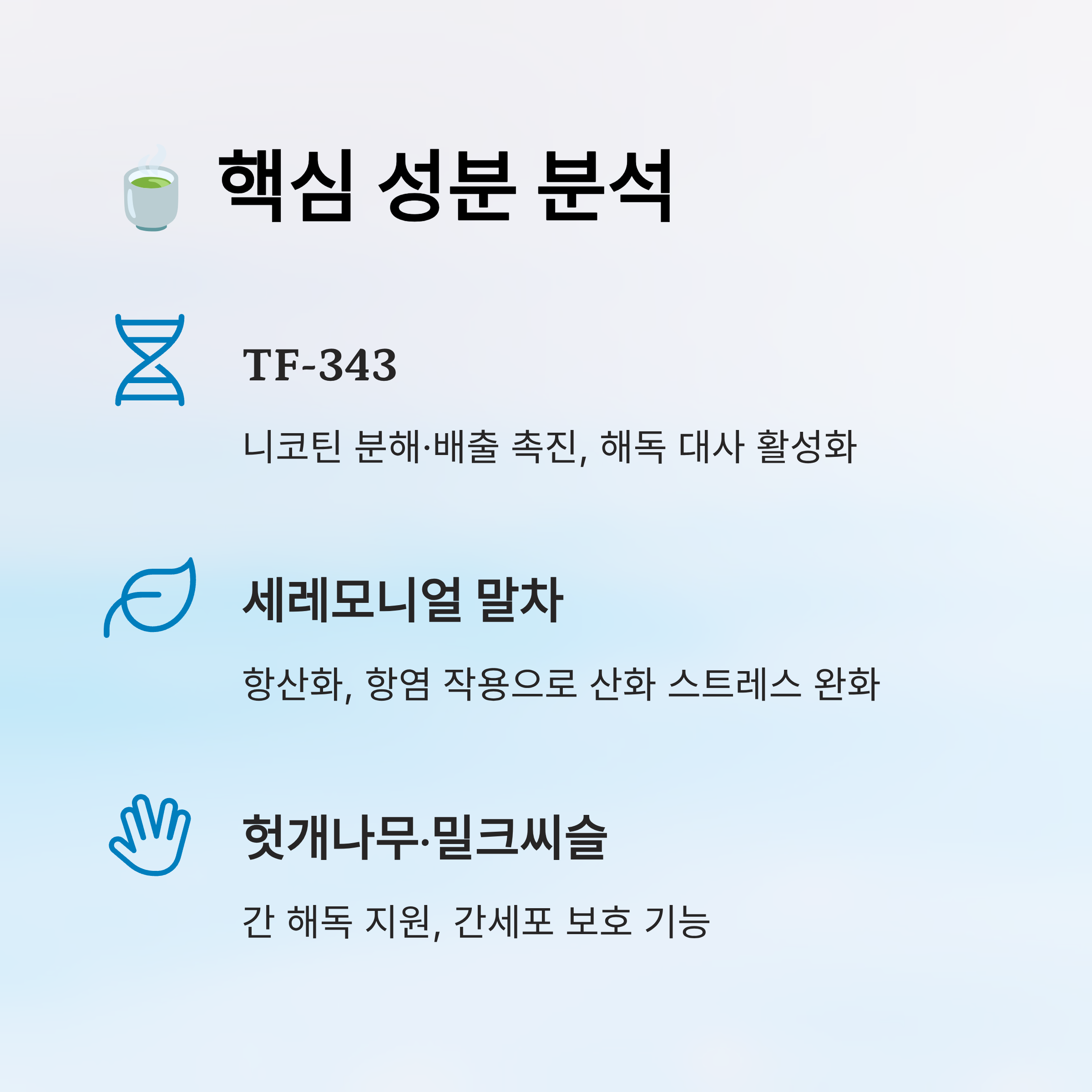 | TF-343 | 간 | 니코틴 분해·배출 촉진 |