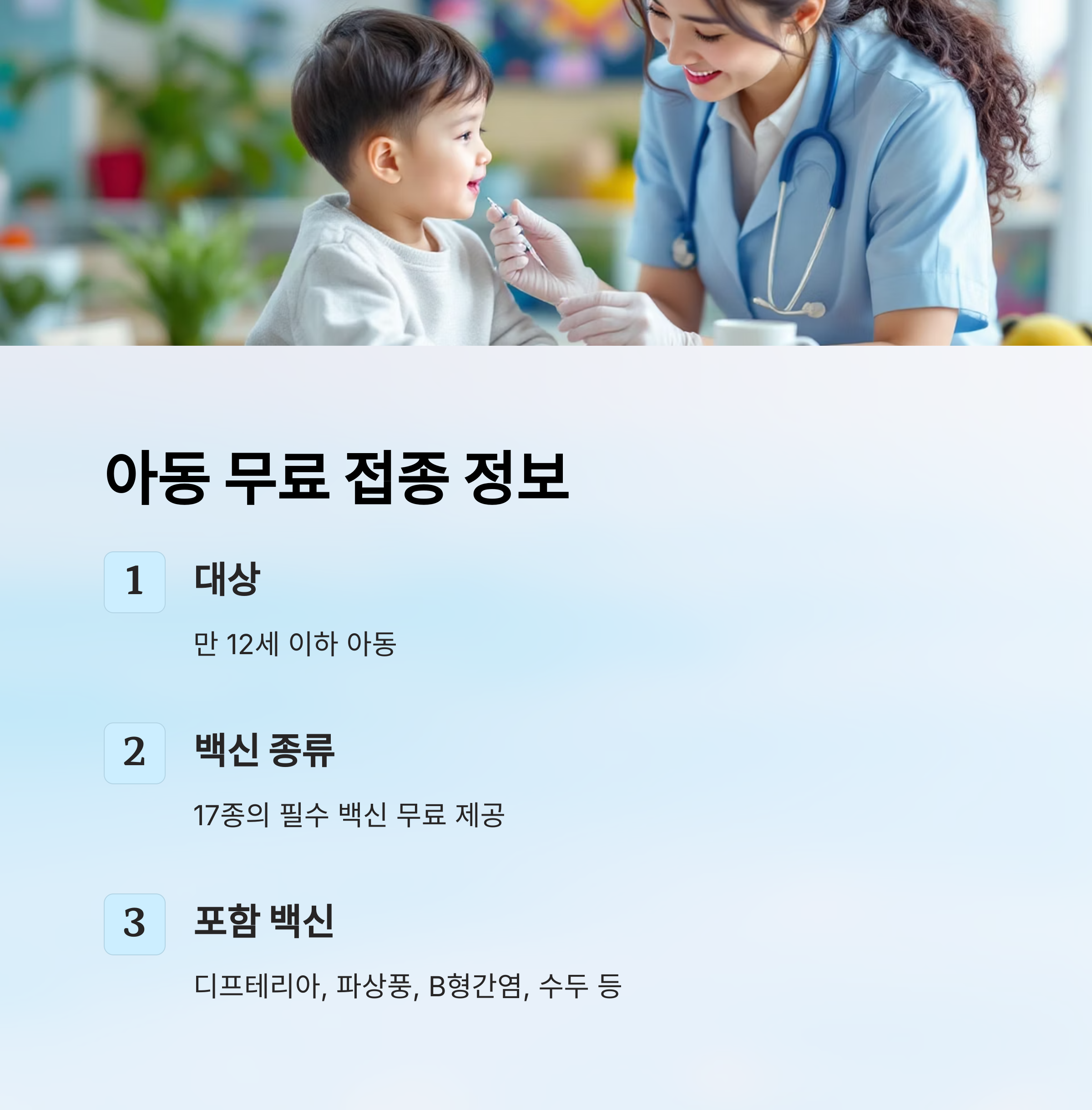 가장 대표적인 대상자는 만 12세 이하 아동이에요. 이들은 생후 0개월부터 12세까지 국가필수예방접종(NIP) 대상자로 지정되어, 총 17종의 백신을 무료로 접종받을 수 있어요. 디프테리아, 파상풍, B형간염, 수두 등 기본적인 백신은 모두 포함돼요.