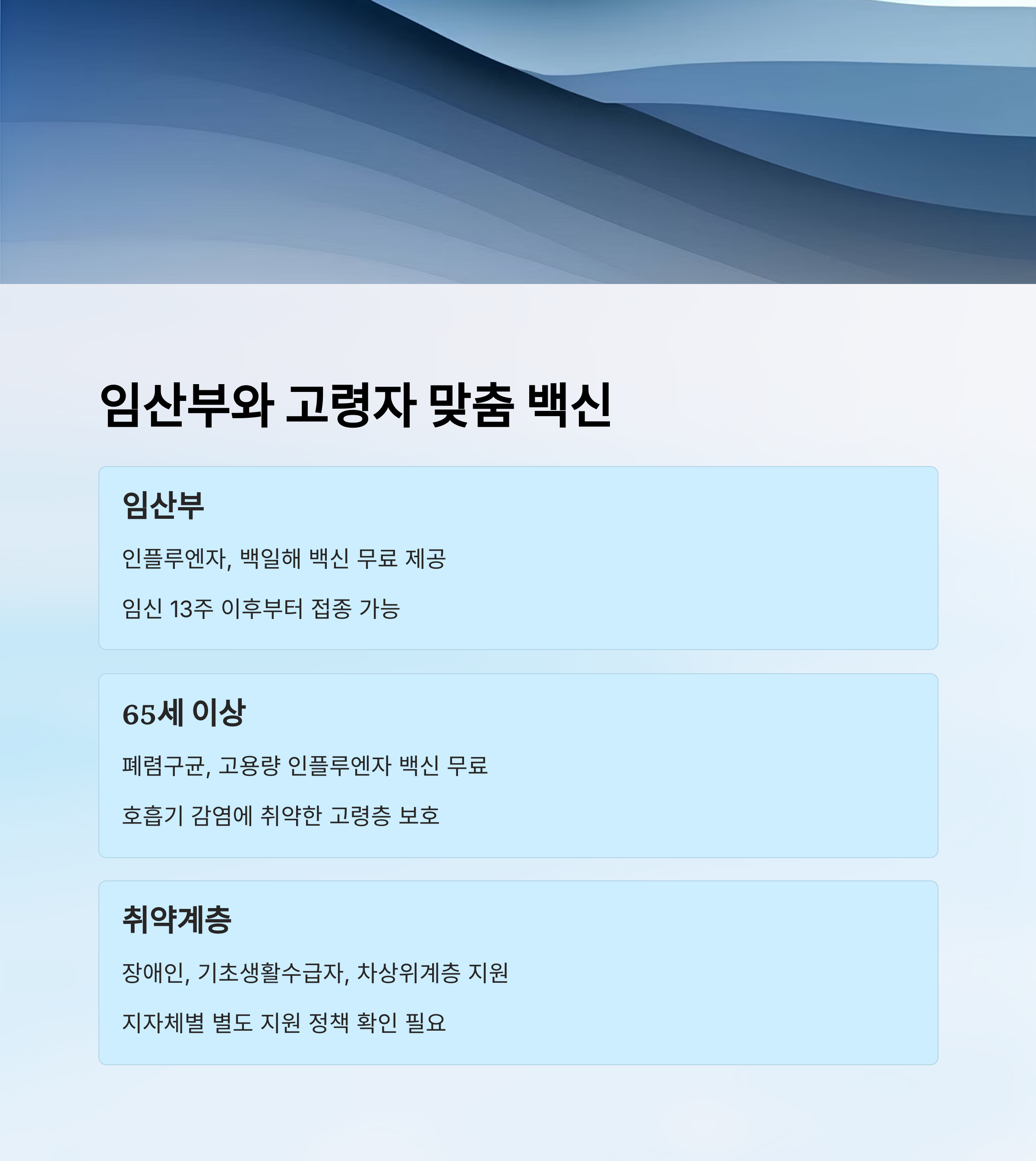 이 외에도 장애인, 기초생활수급자, 차상위계층은 지자체별로 별도의 백신 지원 정책이 있어요. 반드시 보건소에 문의해서 본인이 대상인지 확인해보는 것이 중요해요!
