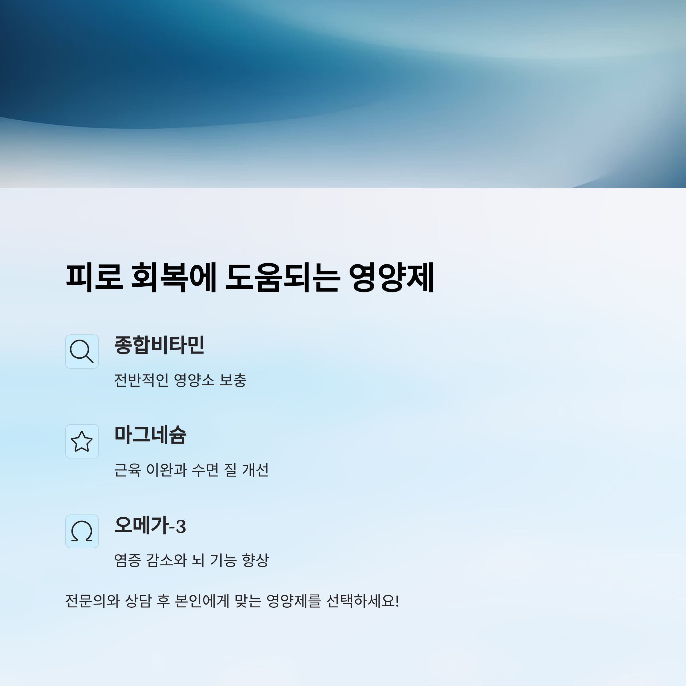 생활습관과 식단을 잘 챙겨도 피로가 지속된다면, 영양제를 적절히 보충해보는 것도 좋아요. 😊