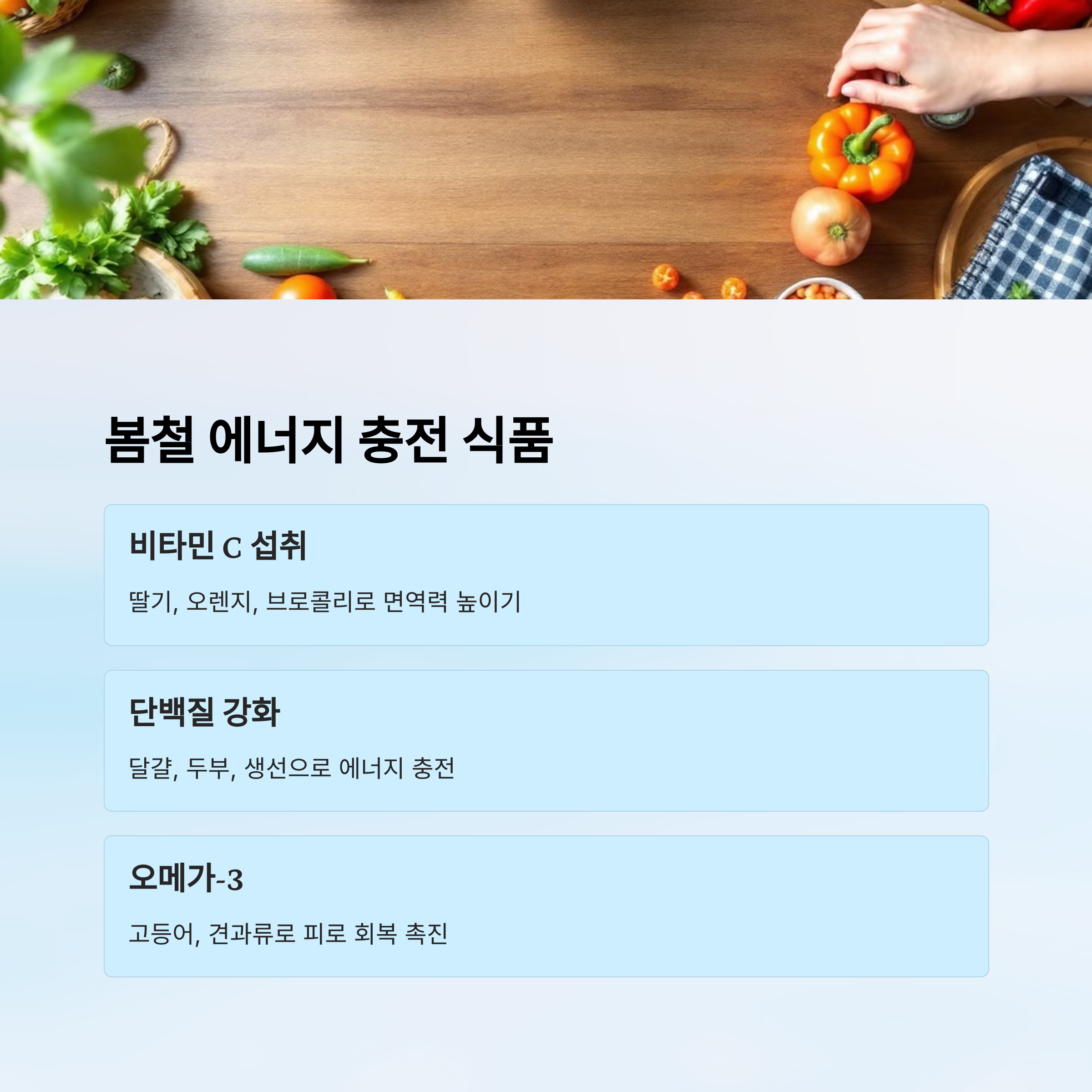 계절의 변화는 입맛에도 영향을 줘요. 봄에는 미네랄과 비타민이 부족해지기 쉬워서 피로를 유발할 수 있어요. 그래서 영양 가득한 음식으로 보충하는 게 중요해요. 🍽
