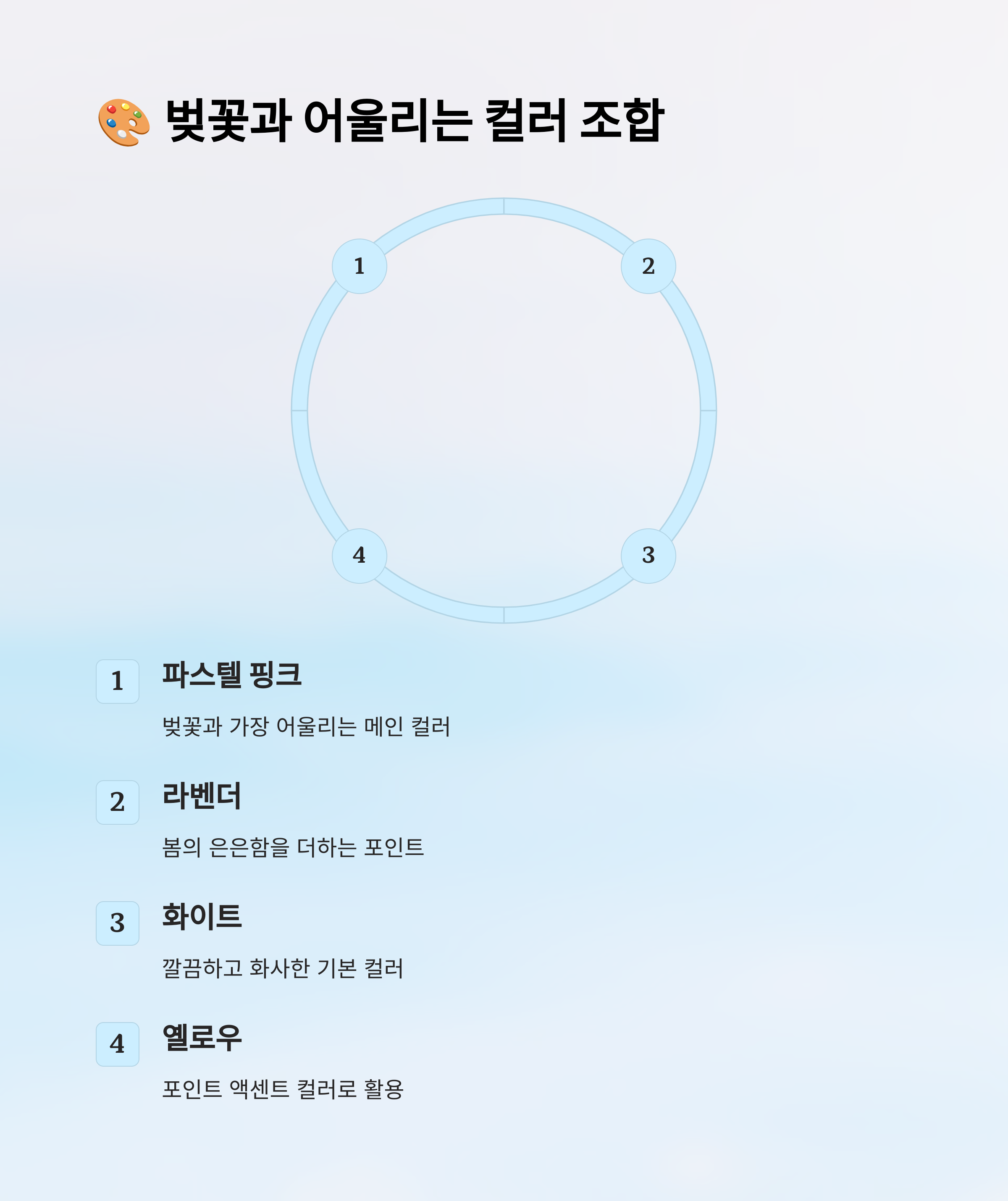벚꽃의 은은한 핑크빛과 어울리는 산뜻한 컬러, 가벼운 소재의 옷차림, 그리고 사진 찍기 좋은 포인트 아이템까지! 오늘은 벚꽃 나들이에 딱 어울리는 봄 코디 노하우를 아낌없이 소개할게요.