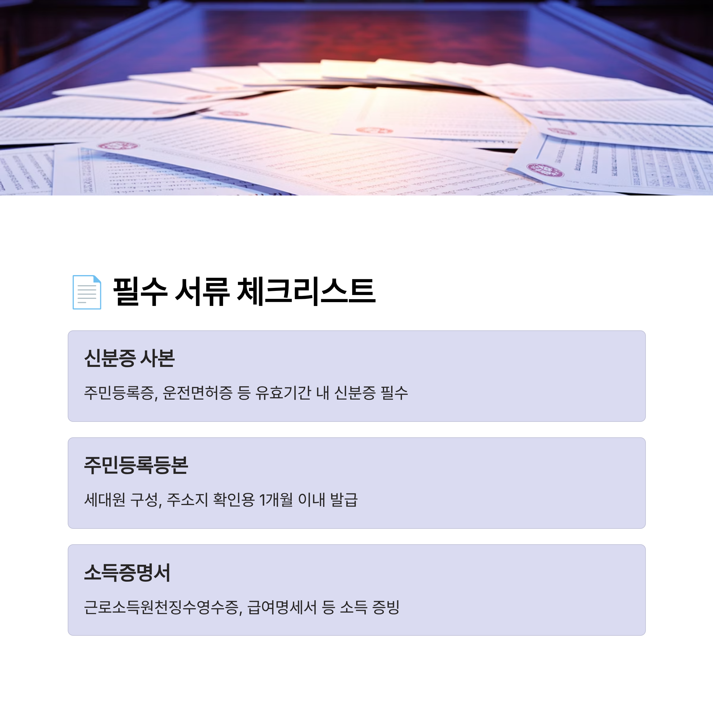 마지막으로, 서류 발급일도 확인하세요! 대부분 1개월 이내, 많아도 3개월 이내 발급된 서류만 유효하기 때문에 예전 서류를 그대로 재사용하면 무효 처리될 수 있어요. 신청 직전에 꼭 다시 뽑는 습관을 들이는 게 좋아요.