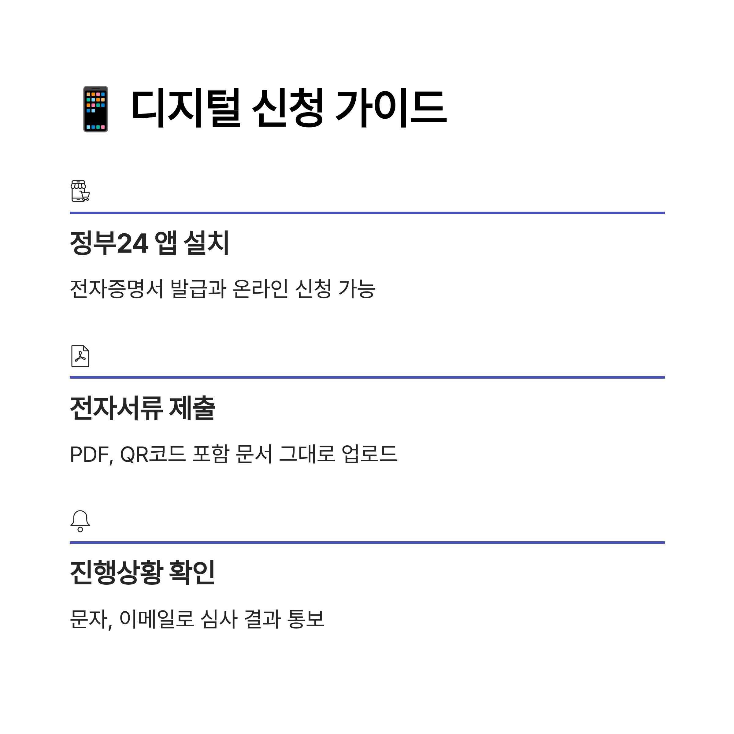 5️⃣ 전자서류 인정 범위 확대: 이제 대부분의 행정기관에서 종이서류 대신 '전자증명서' 제출이 가능해졌어요. 특히 정부24 앱, 행정전자문서지갑 등에서 발급되는 PDF 문서는 별도 출력 없이 그대로 업로드하면 돼요. 제출이 훨씬 간편해졌죠!