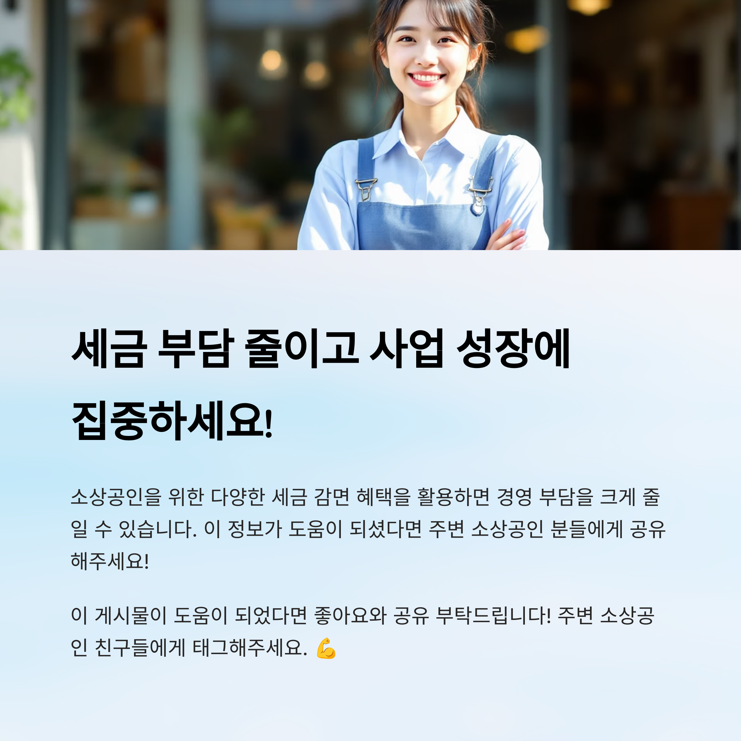 세금은 소상공인에게 큰 부담이 될 수 있어요. 하지만 다양한 세금 감면 혜택을 활용하면 부담을 줄일 수 있어요! 💰
