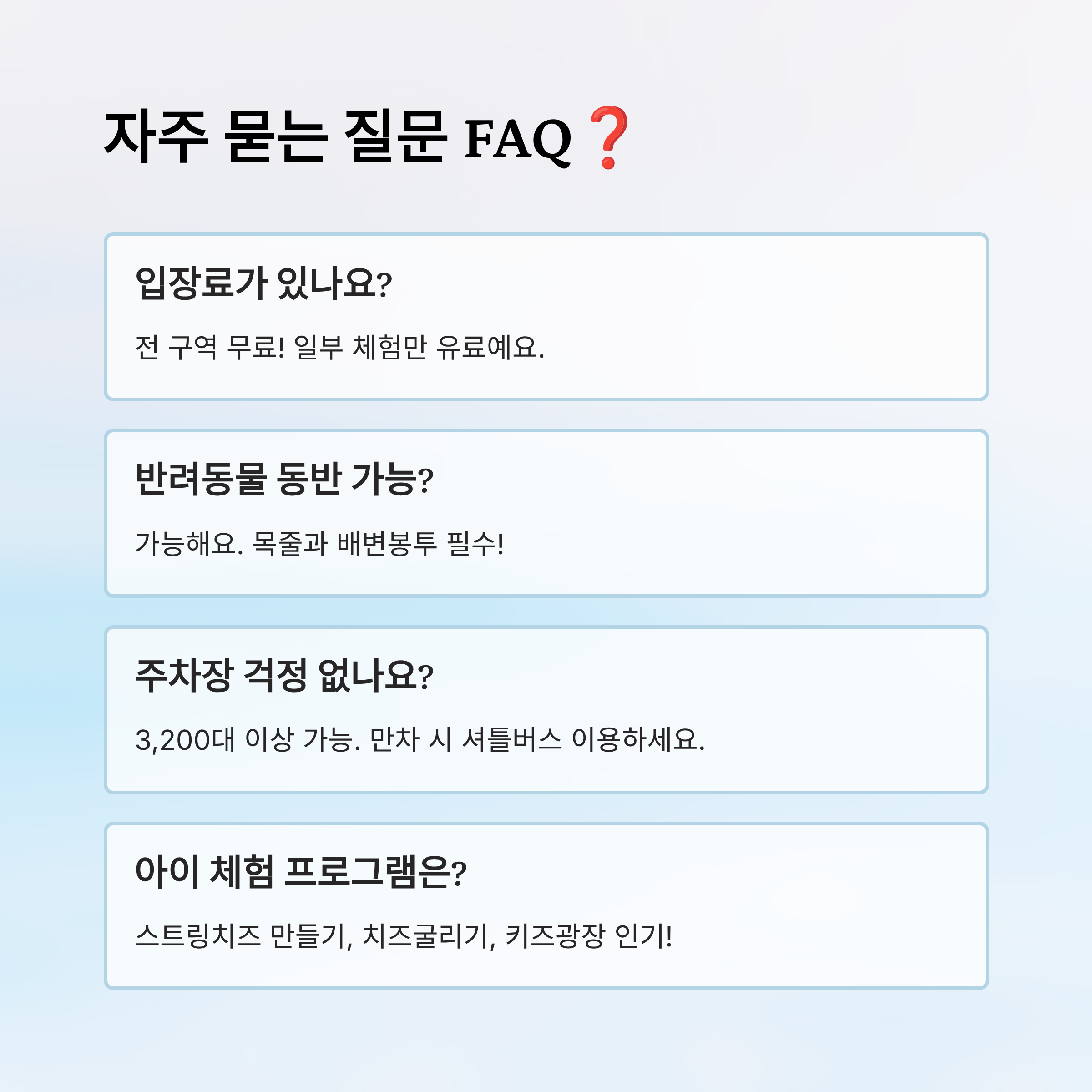 특히 올해는 기존보다 하루 더 늘어난 5일 일정으로 진행되고, 치즈 만들기 체험, 쌀피자 만들기, 치즈 경매 등 재미있는 프로그램이 넘쳐나요. 이런 큰 행사일수록 ‘준비물 체크리스트’가 꼭 필요해요! 날씨부터 복장, 결제수단, 전자기기까지 하나하나 꼼꼼히 챙겨야 후회 없어요.