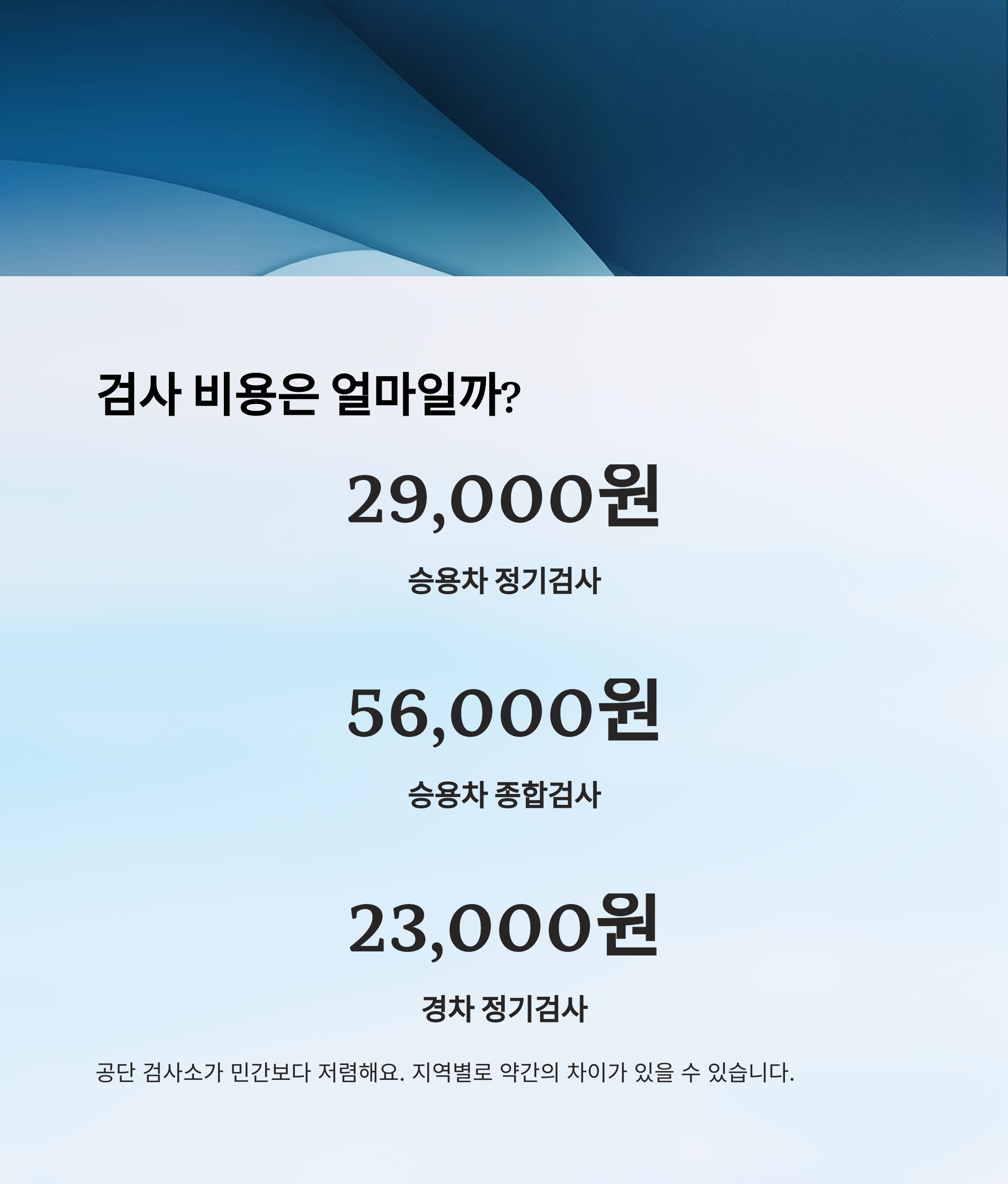 💡 참고! 민간 자동차 검사소와 공단 검사소의 비용 차이가 있을 수 있어요. 공단에서 운영하는 검사소는 비교적 저렴한 편이니 가까운 곳이 있다면 이용해 보세요!