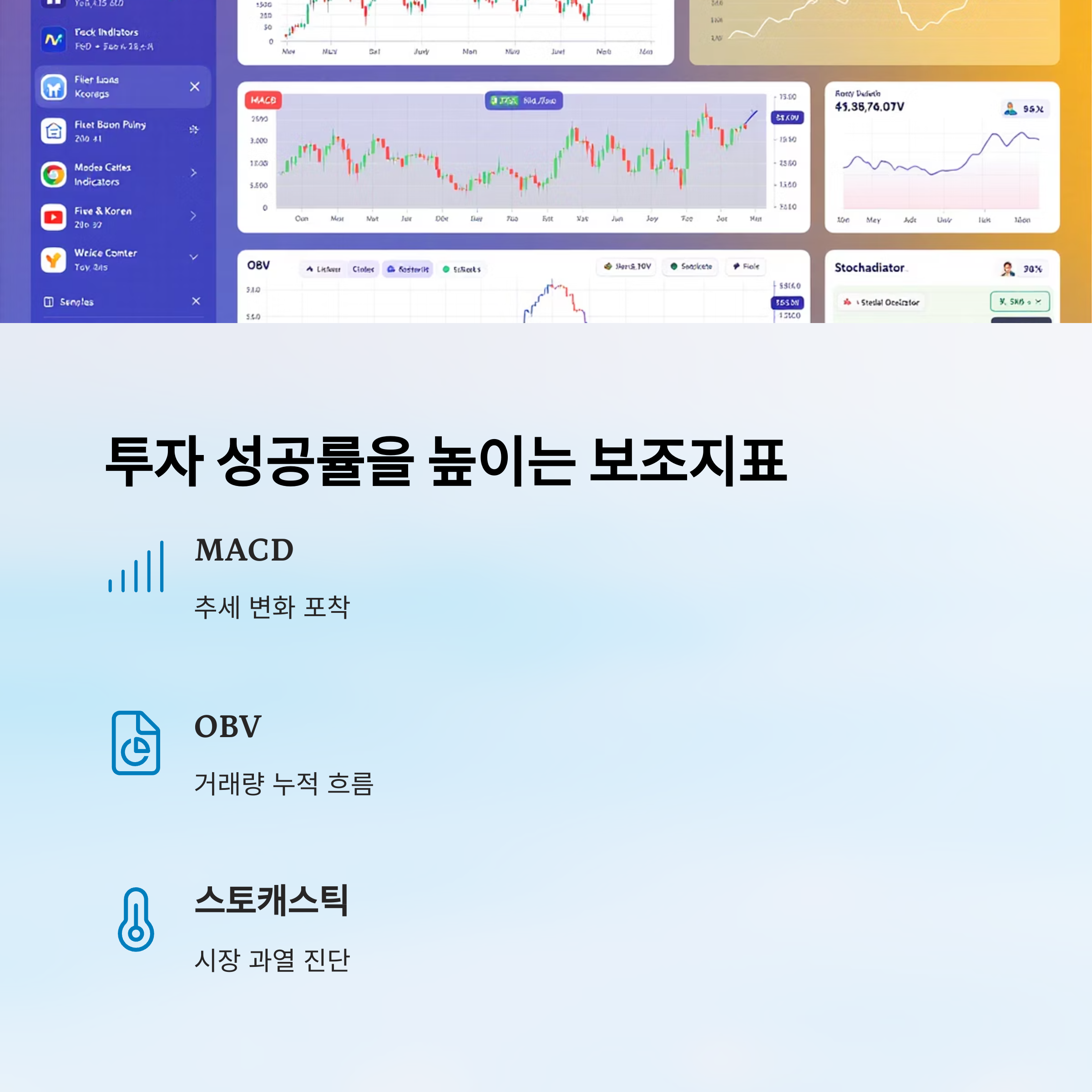 자, 다음은 이런 기술적 지표를 보조해주는 **MACD, RSI, OBV** 같은 실전용 보조지표들을 추천해드릴게요. 테마주 매매의 필수 도구니까 꼭 확인하세요! 🧠