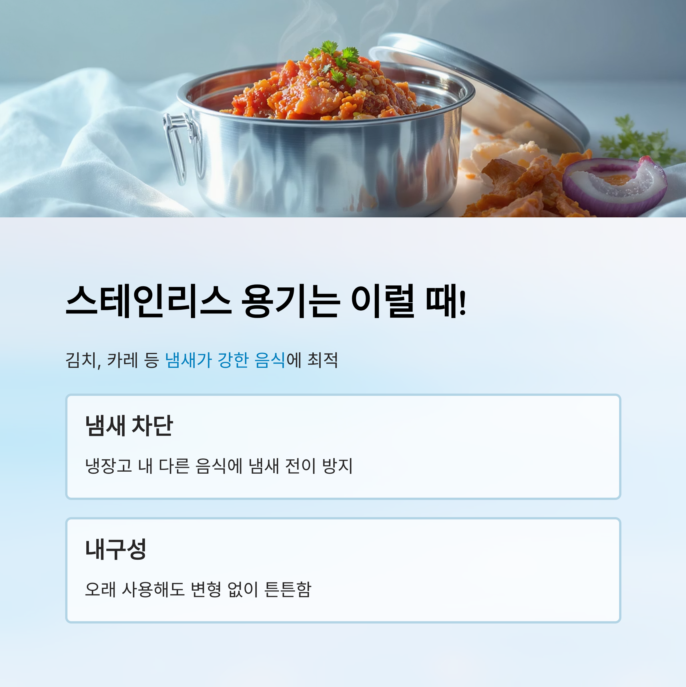 ✅ 위생적: 음식 냄새나 색이 배지 않아 깔끔해요.