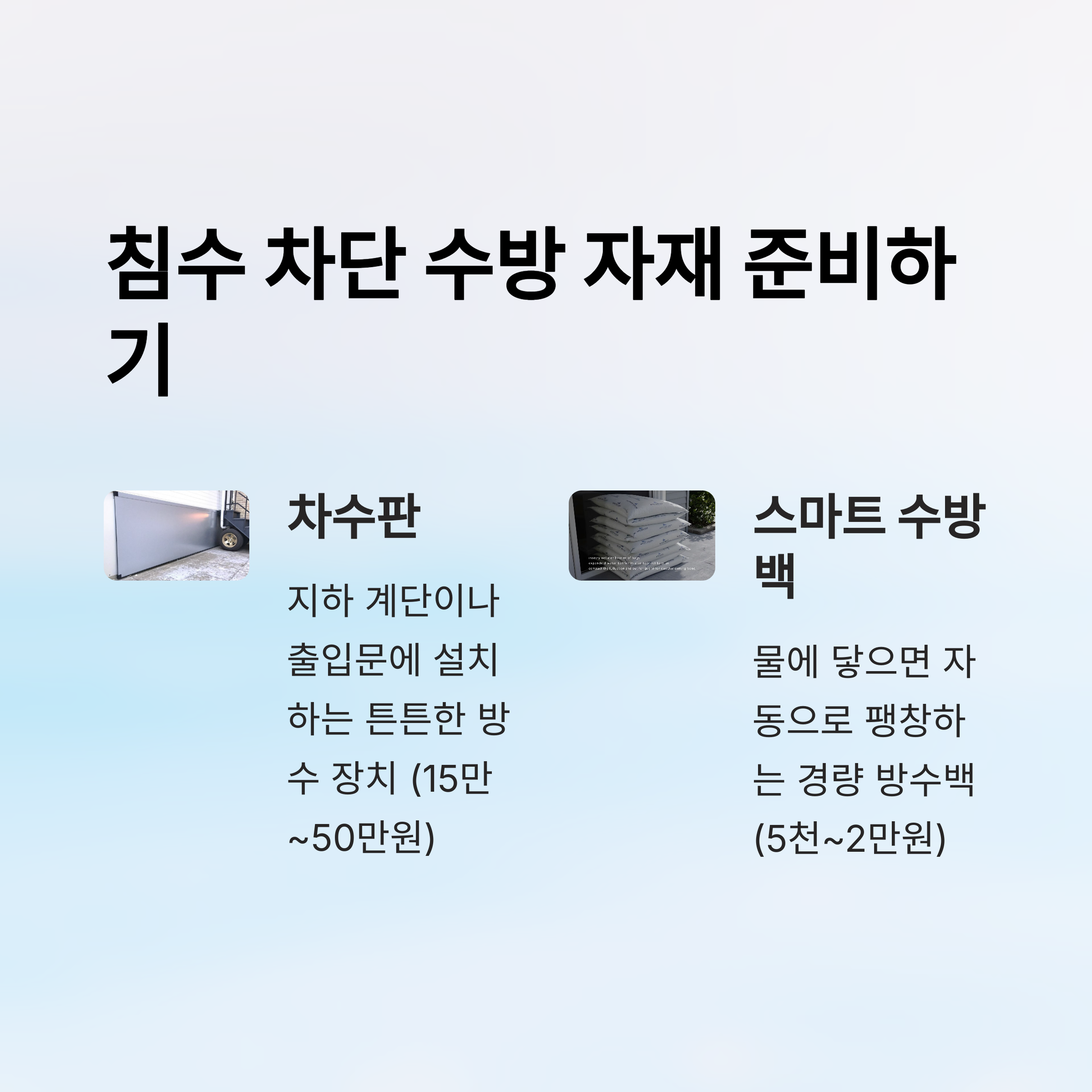 수방 자재는 한두 개 사는 게 아니라, 전체 지하 구조를 고려해 물길을 막을 수 있도록 계획적으로 설치해야 효과를 볼 수 있어요.
