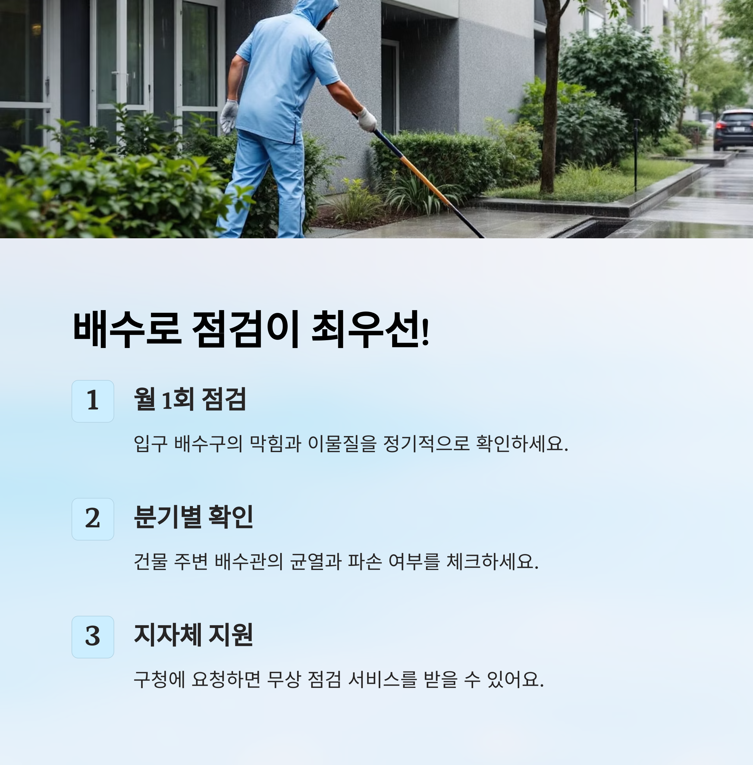 배수 점검은 어렵지 않지만 정말 중요한 예방 조치예요. 평소에 조금만 신경 써주면 침수 위험을 크게 줄일 수 있답니다.