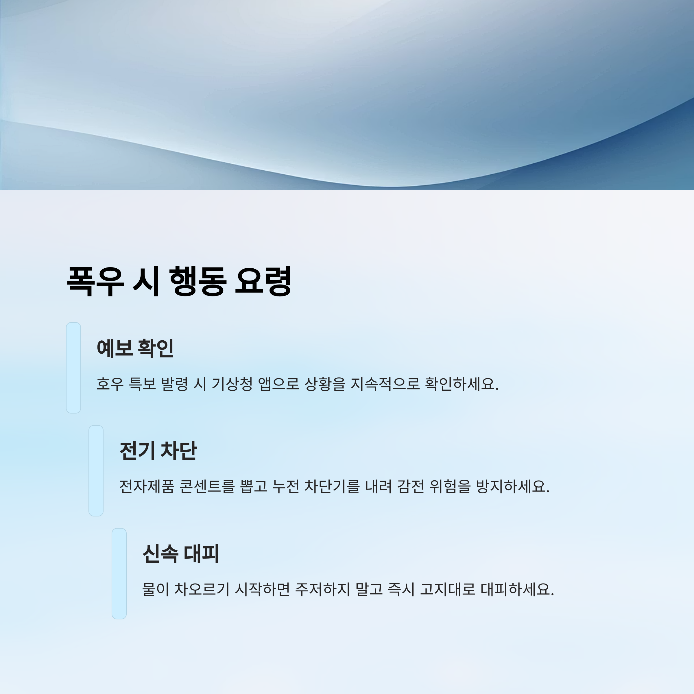 지하주택은 갑작스러운 폭우에 가장 먼저 위험에 처하게 돼요. 그래서 침수가 시작되기 전과 도중에 어떻게 행동하느냐에 따라 생명과 재산 피해가 크게 달라질 수 있어요. 무엇보다 중요한 건 '미리 준비'와 '신속한 대피'예요.