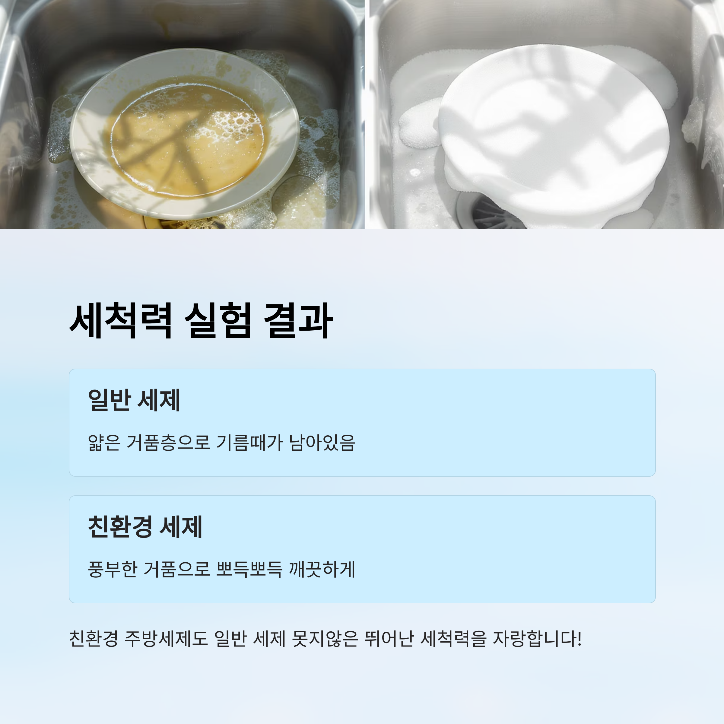 일반 주방세제와 세척력이 유사하거나 더 우수한 것으로