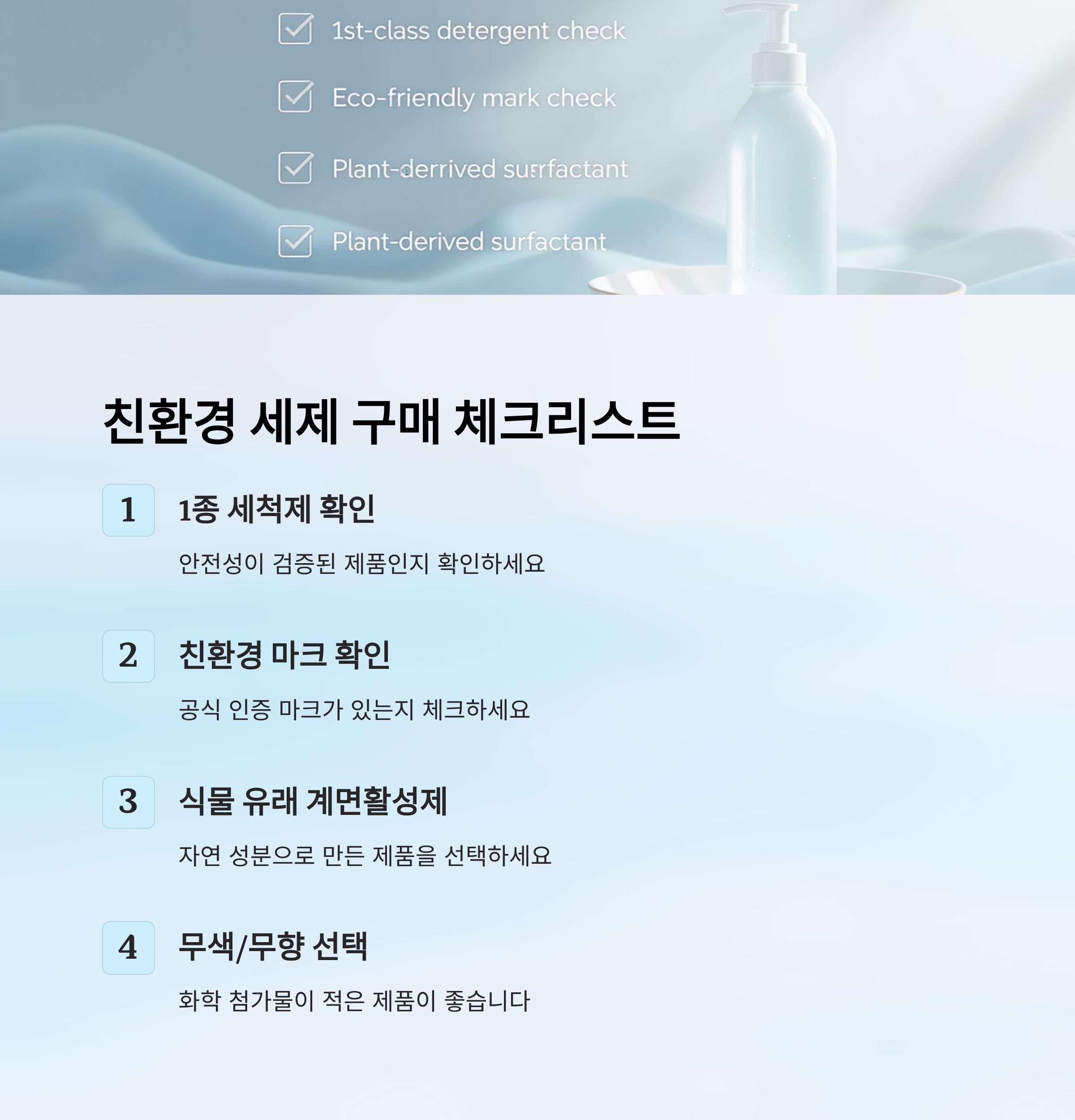 ✅ 계면활성제 종류 확인: 식물 유래 계면활성제인지 반드시 확인해야 합니다.