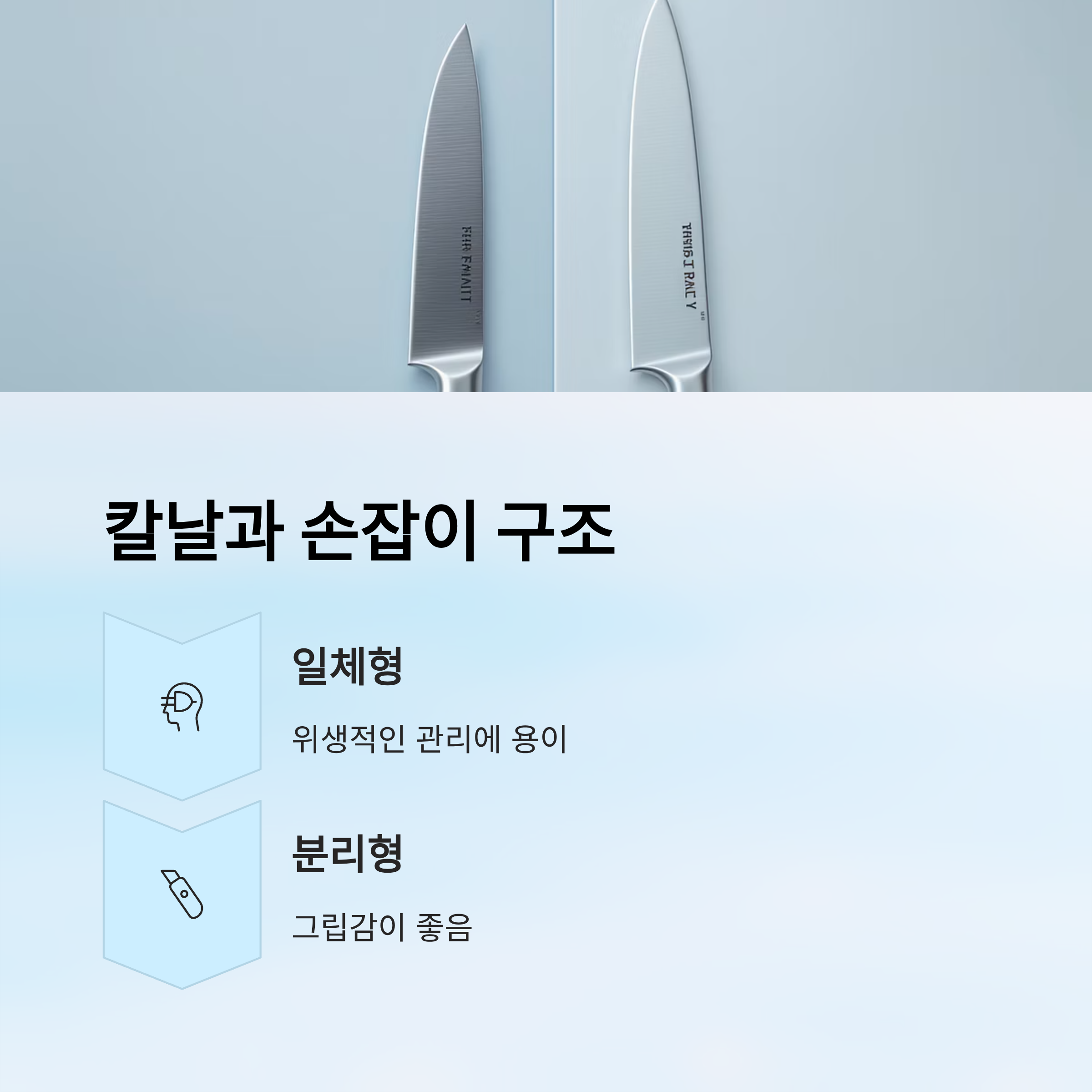 일체형 칼은 칼날과 손잡이 사이에 틈이 없어서 세균 번식 걱정이 덜하죠.