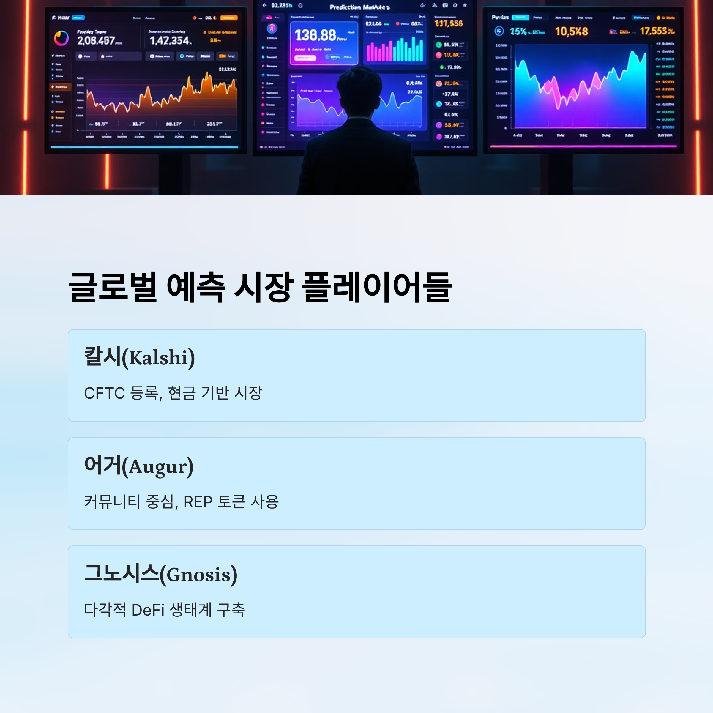 해외 예측 시장은 폴리마켓 외에도 다양한 플랫폼이 존재해요. 특히 미국의 칼시(Calshi)와 유럽의 메타퀄리아(Metaculus)는 각기 다른 방식으로 시장을 형성하며 영향력을 확대하고 있어요.