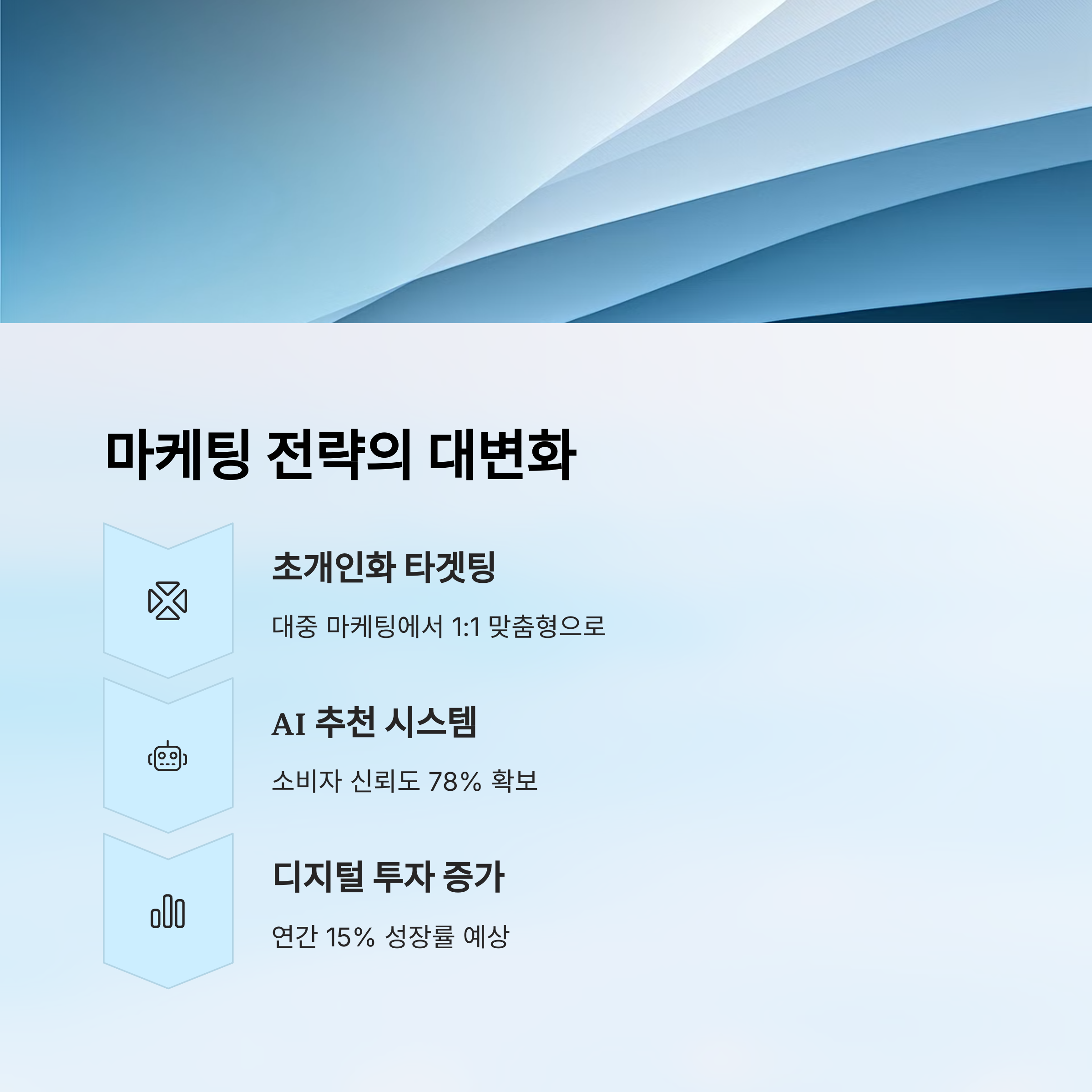 2025년 마케팅 흐름은 ‘예측 기반 전략’이 중심이 될 거예요. 단순히 소비자의 반응을 보는 게 아니라, 그 반응이 만들어지기 전부터 ‘예상’하고 ‘설계’하는 쪽으로 바뀌고 있죠.