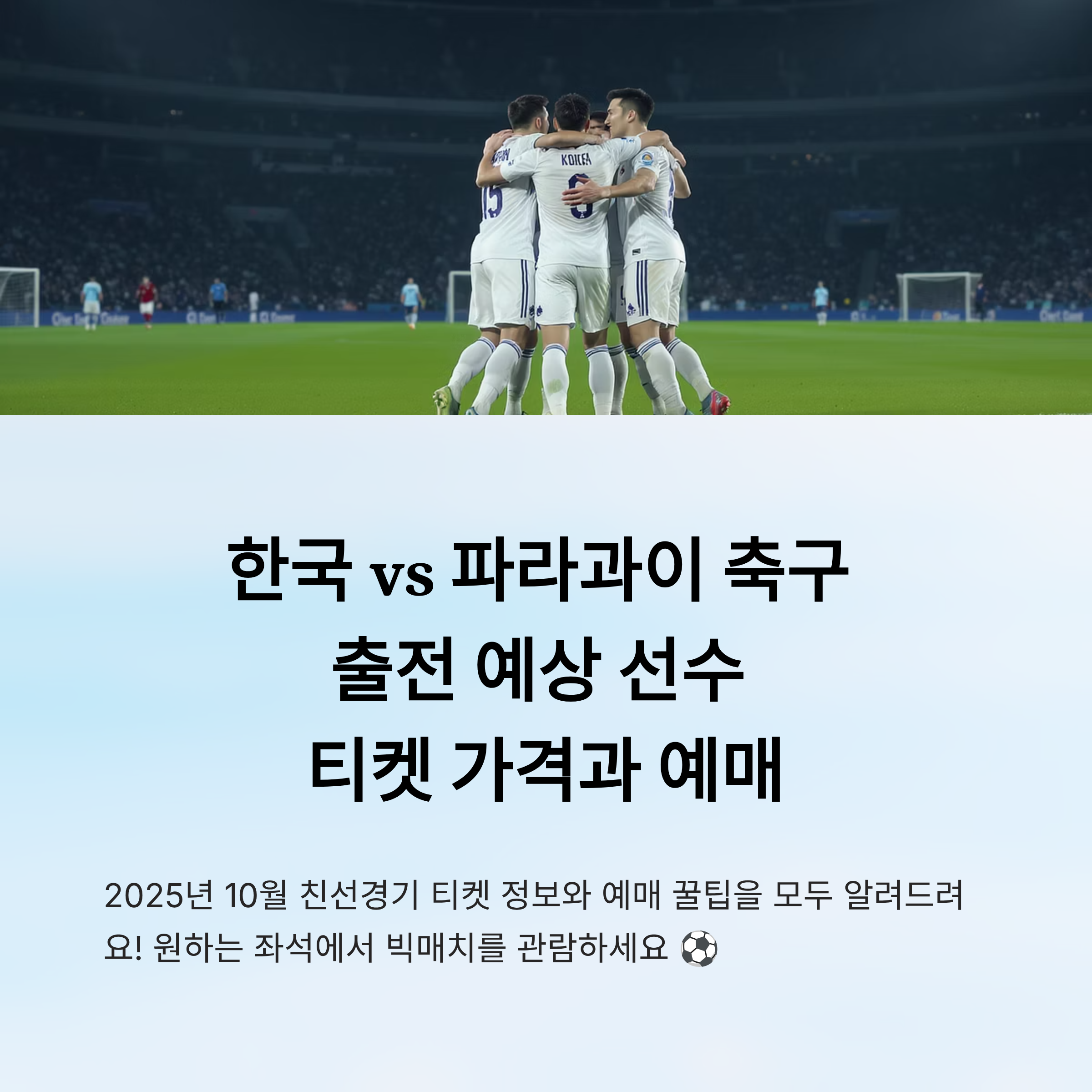 ⚽ 한국과 파라과이의 2025년 10월 친선 경기는 많은 축구 팬들이 기다려온 빅매치예요! 좌석 가격과 티켓 수량, 예매 절차를 잘 알아두면 원하는 자리에서 경기를 생생하게 관람할 수 있어요. 지금부터 예매 꿀팁과 함께 예상 출전 선수 정보까지 모두 알려줄게요! 📢
