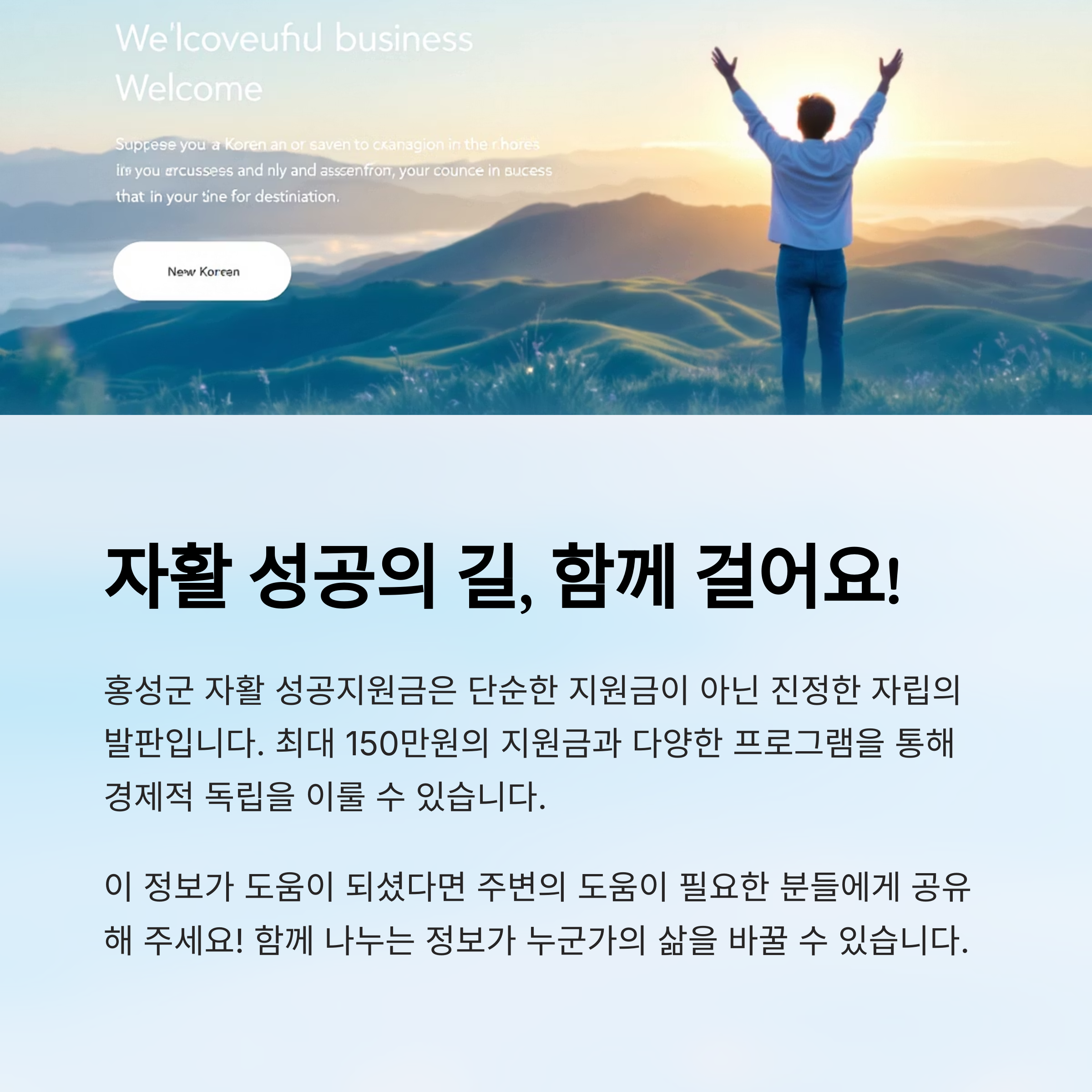 충청남도 홍성군에서는 근로 능력이 있는 저소득층 주민이 자립할 수 있도록 다양한 제도를 운영 중이에요. 특히 자활근로사업 참여 후 취·창업에 성공한 주민에게 ‘자활 성공지원금’을 제공해 장기적인 자립을 돕고 있답니다.