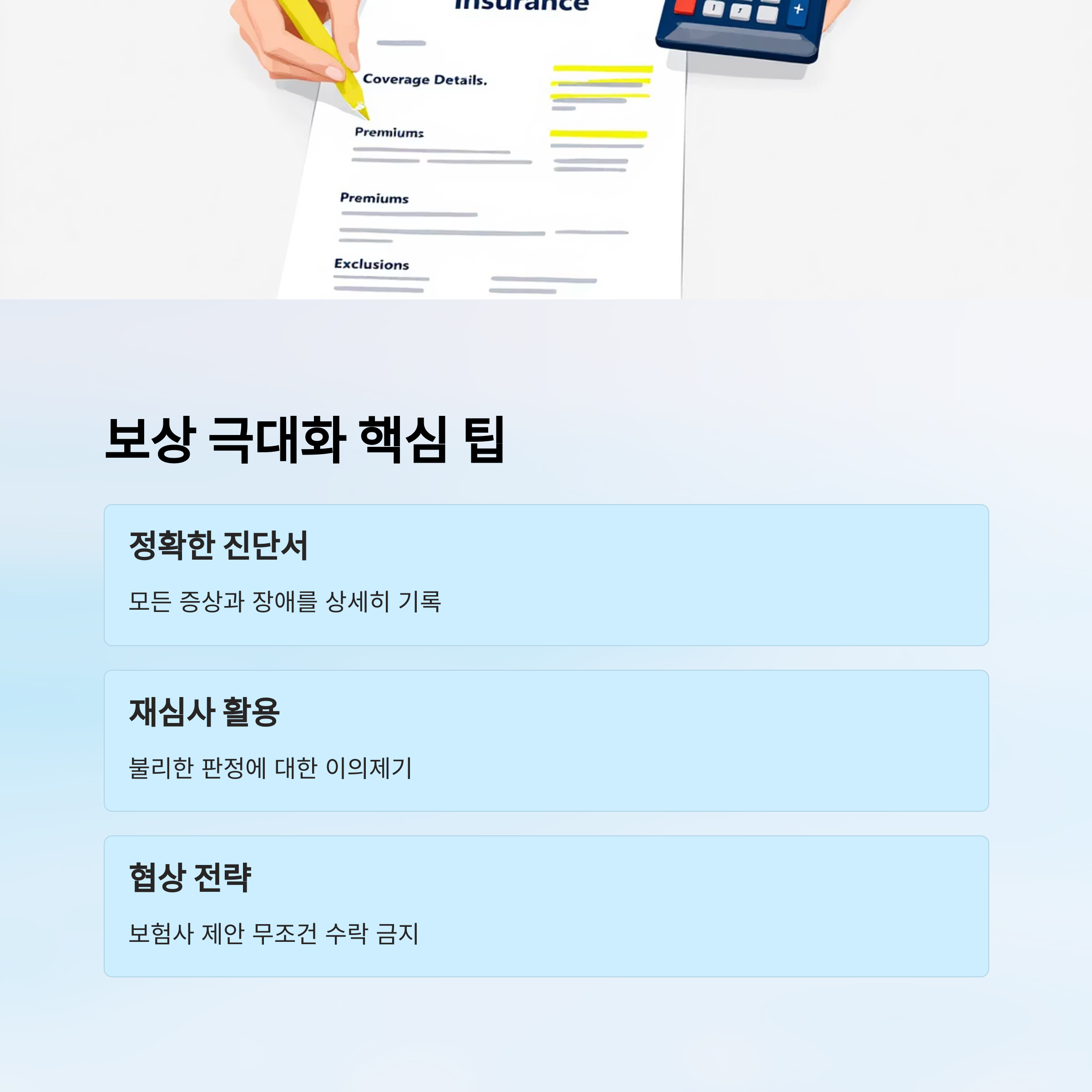 진단 기준을 확실히 알고 절차대로만 따라도, 보상률은 3배까지 차이 날 수 있어요! 👏