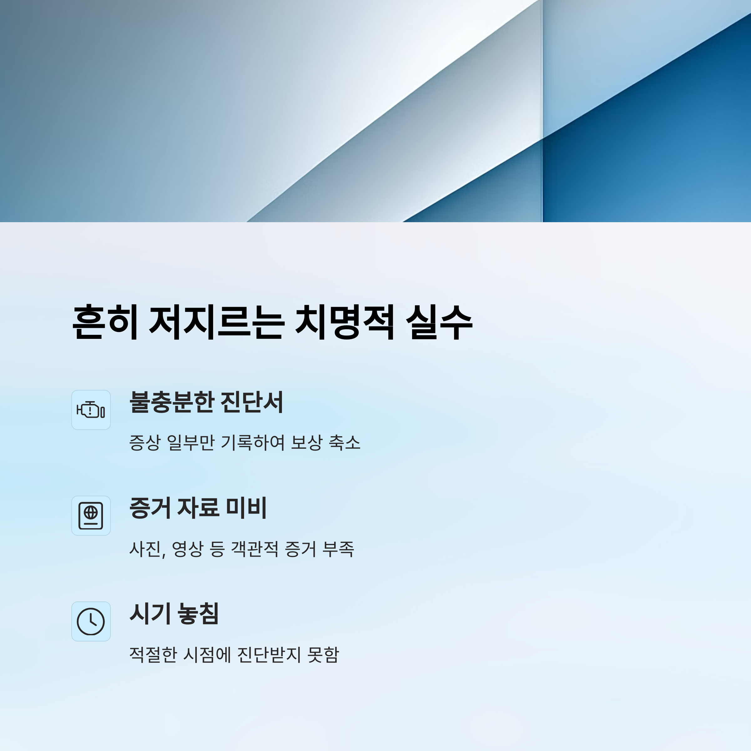 3. 병원 말만 믿고 자료 준비 미흡 → 보험사 주장에 반박 못함