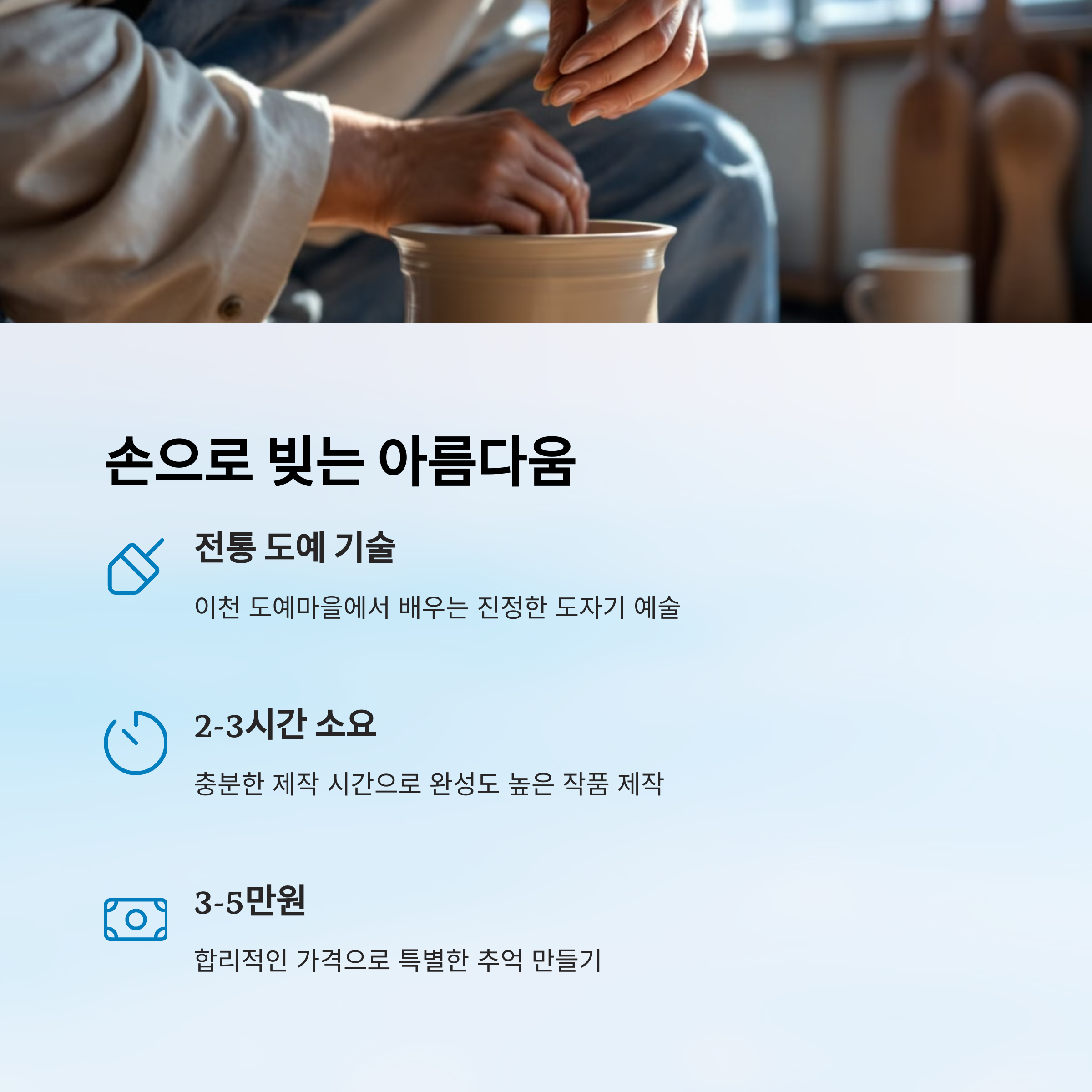 | 경기도 이천 | 이천 세라믹스 체험관 | 전문 도예가 지도, 다양한 도자기 제작 |