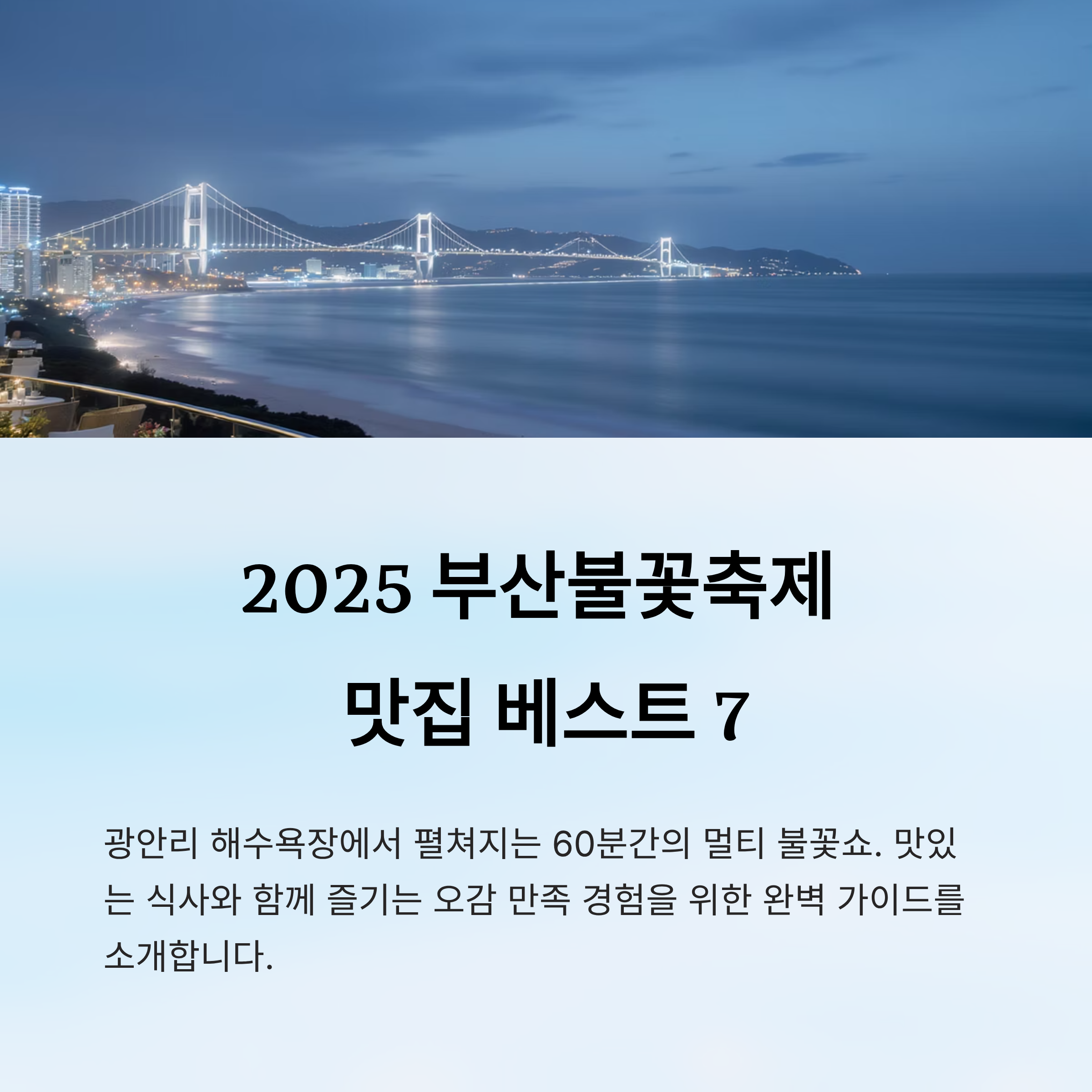 부산불꽃축제를 제대로 즐기려면, 불꽃이 잘 보이는 ‘뷰맛집’ 레스토랑을 선택하는 것도 정말 중요해요. 특히 광안대교가 정면으로 보이는 고층 레스토랑은 예약 전쟁이 치열하니 서둘러야 해요. 단순히 맛뿐 아니라 분위기와 조망이 모두 갖춰져 있어야 진짜 성공한 ‘불꽃 미식 투어’라고 할 수 있겠죠!