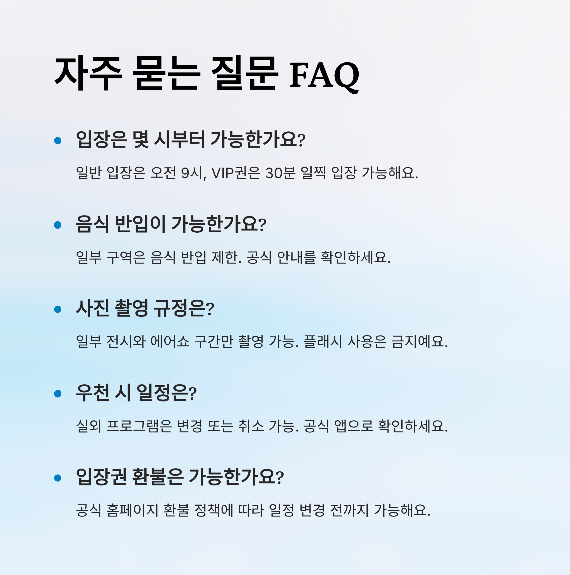 | 티켓/신분증 | 필수 | QR코드 또는 실물 지참 |