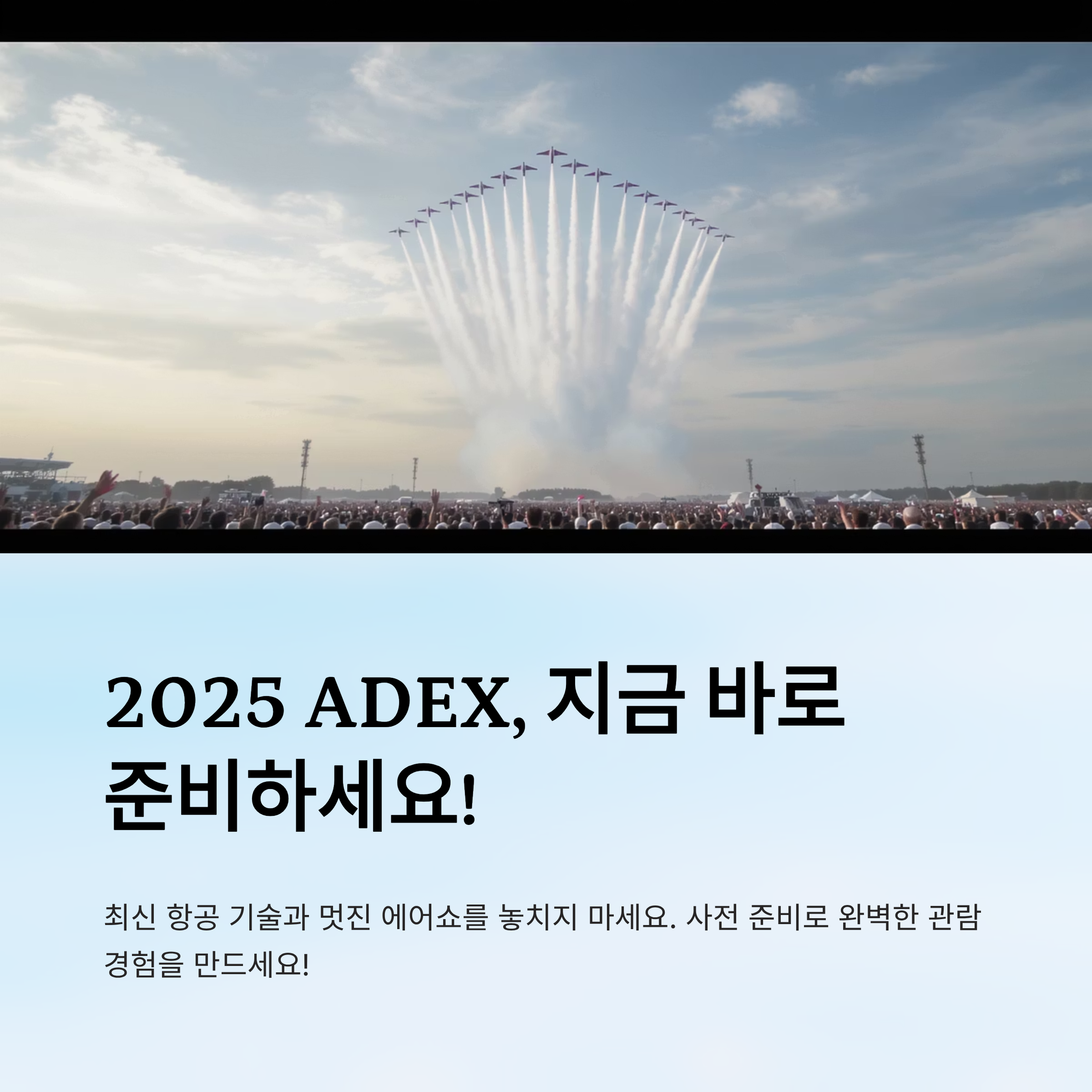 📅ADEX 에어쇼는 하루 종일 진행되므로 시간대별 일정을 확인하는 것이 좋아요. 오전에는 최신 항공기 전시와 드론 시연, 오후에는 파일럿 시범 비행과 에어쇼 메인 퍼포먼스가 집중돼 있어요.