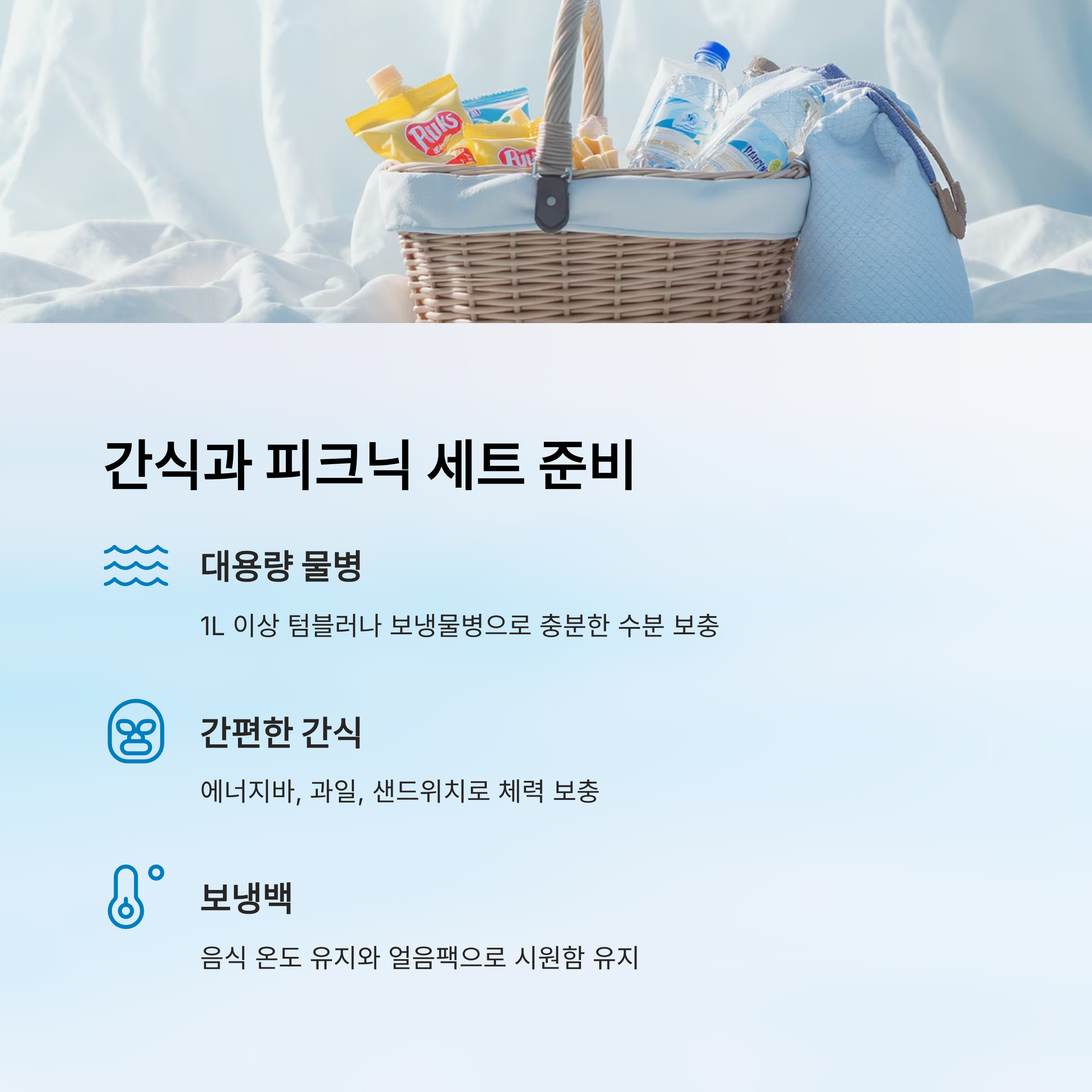 🍙 간식, 생수, 휴대용 피크닉 세트
