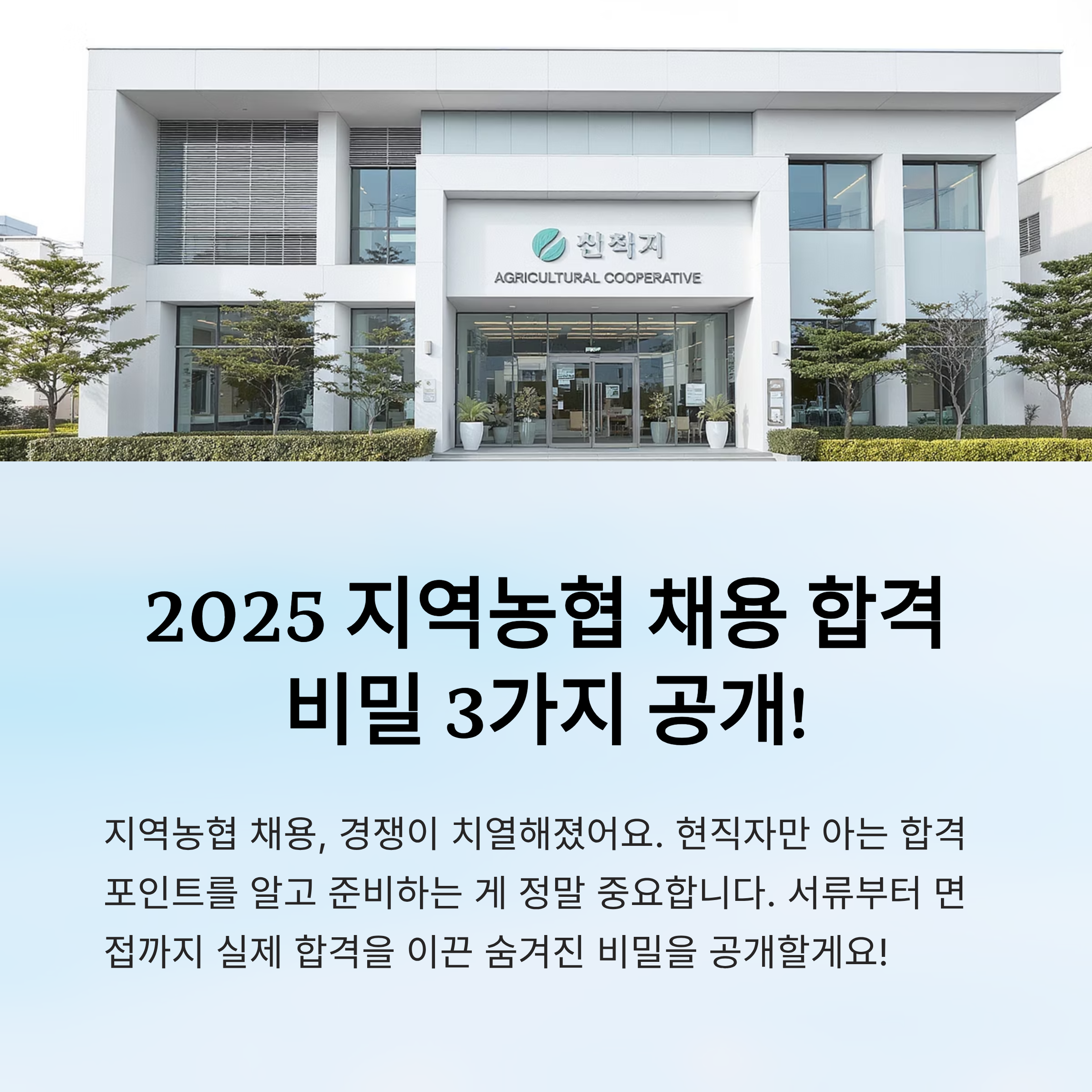 이번 콘텐츠에서는 실제 지역농협에서 근무 중인 직원들의 인터뷰와 경험을 바탕으로, 서류부터 면접까지 실제 합격을 이끈 ‘숨겨진 비밀’ 3가지를 낱낱이 공개할 거예요. “내가 생각했을 때 이건 진짜 처음 알게 되는 꿀팁이다!” 싶은 부분도 분명 있을 거예요. 😎